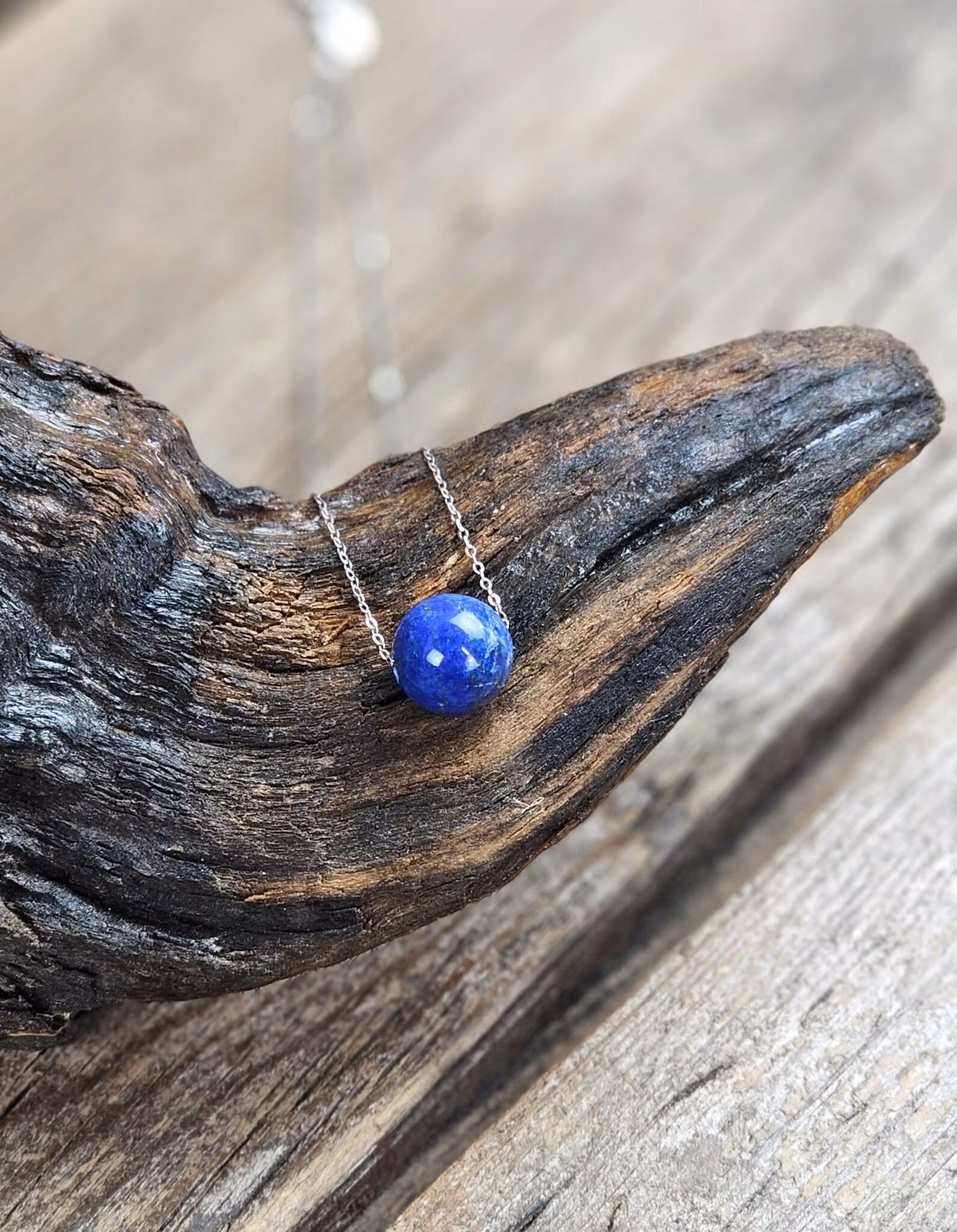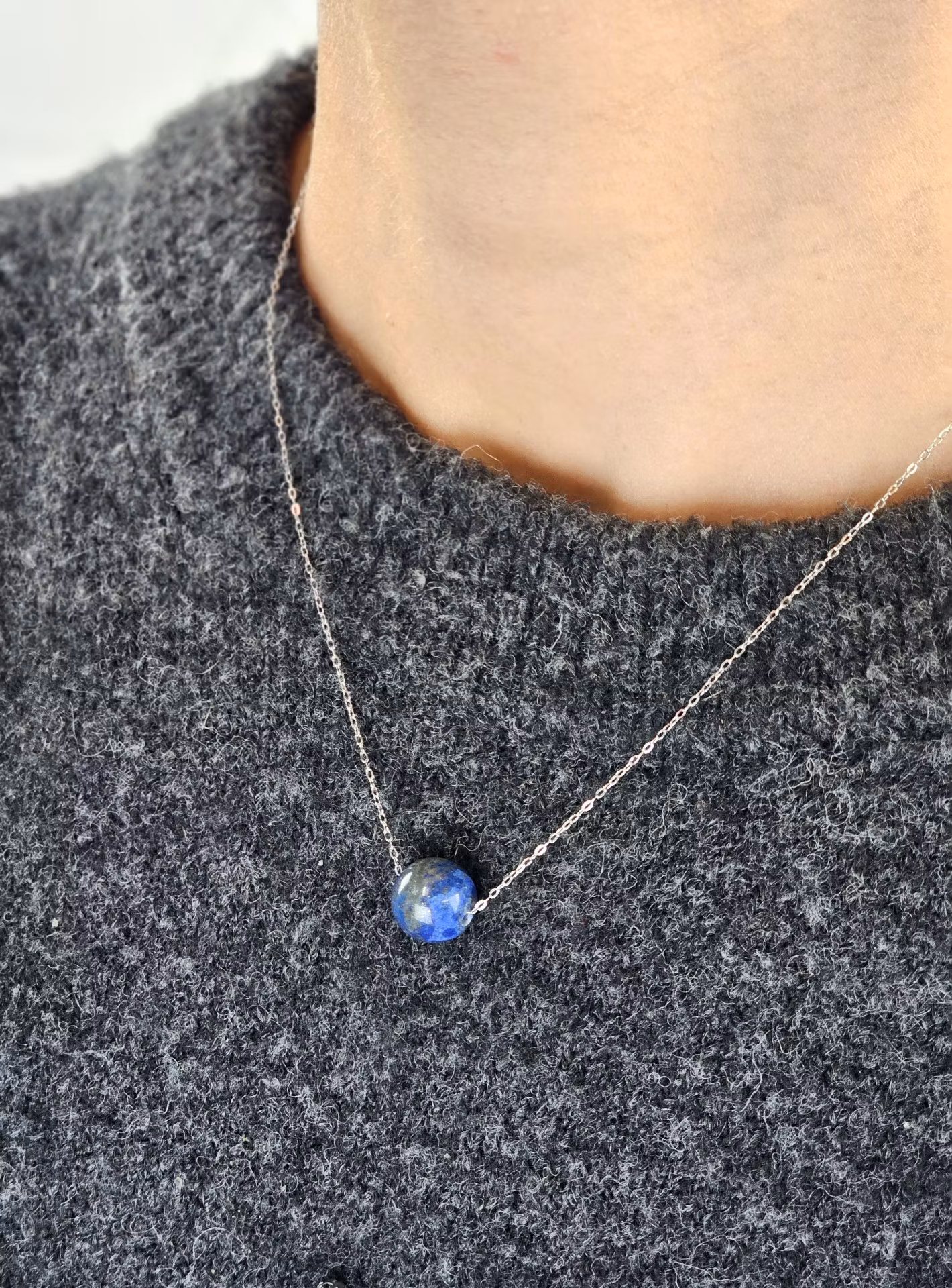 Elegant halsband med en nätt kula av Lapis Lazuli och kedja i äkta silver. Denna stilrena design kompletterar perfekt våra kristallarmband med runda pärlor, som finns i vår webbshop. Jättefint att matcha, utforska våra populära 6mm armband och fler storlekar hos oss!
