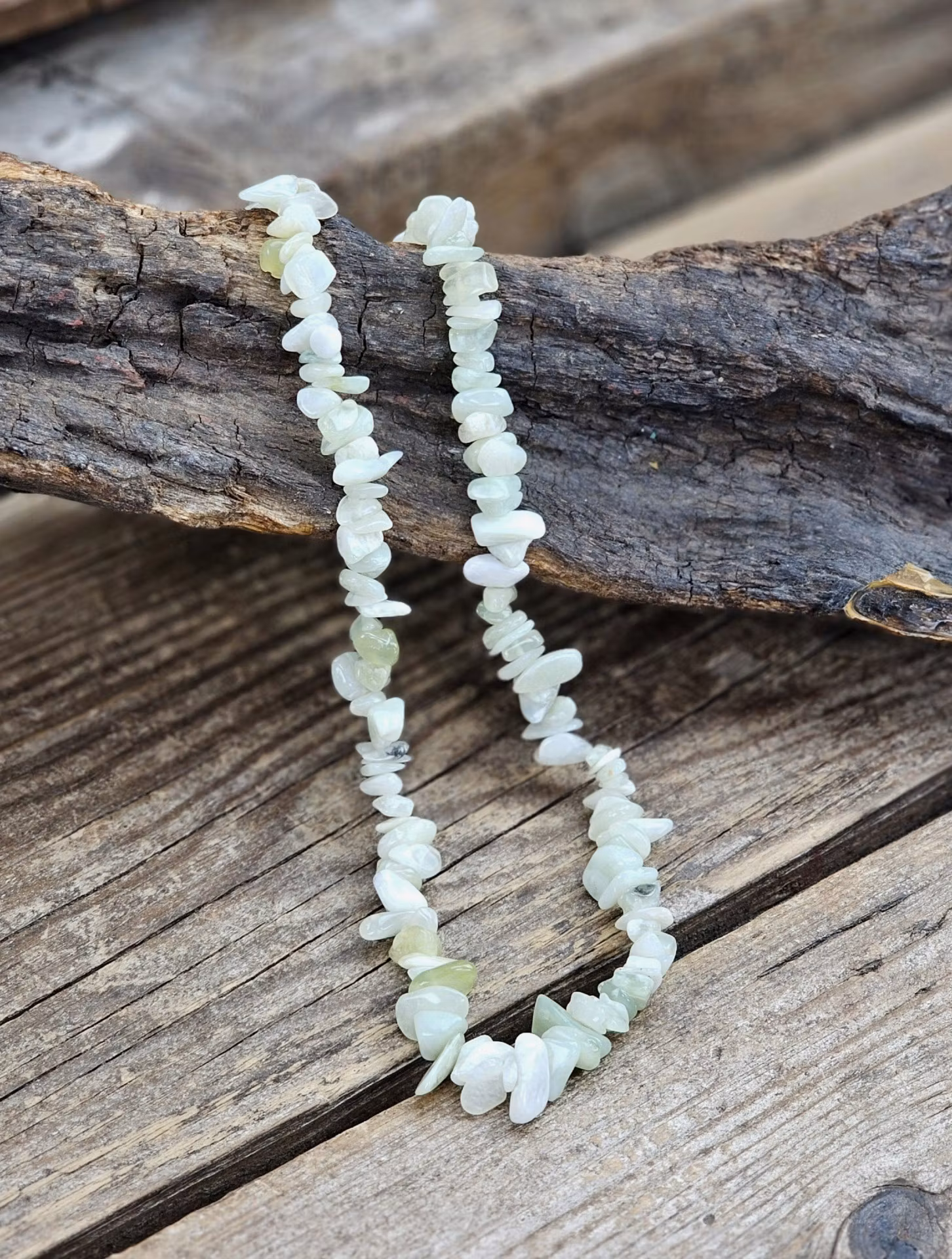 Vackert chipshalsband skapat av naturliga kristaller av New Jade i mjuka, ljusgröna till krämiga toner med ett harmoniskt och fräscht uttryck. De oregelbundna kristallchipsen ger halsbandet en levande och naturlig känsla som gör det lätt att bära både till vardags och fest. Den längre modellen ger ett ledigt och dekorativt uttryck och träs smidigt över huvudet. Säljs styckvis.