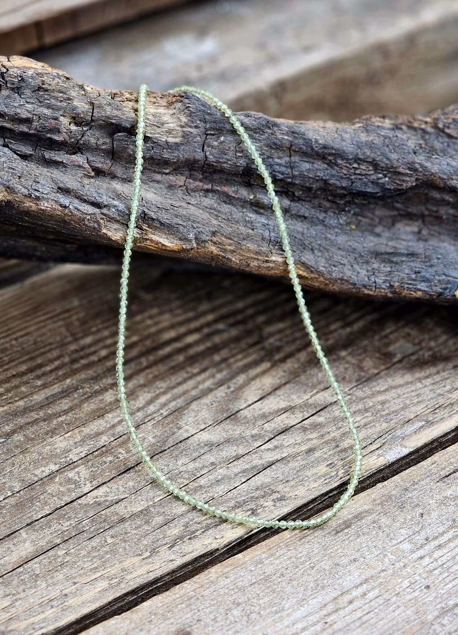 Peridot (Olivin), halsband 2mm facetterade pärlor 925s.