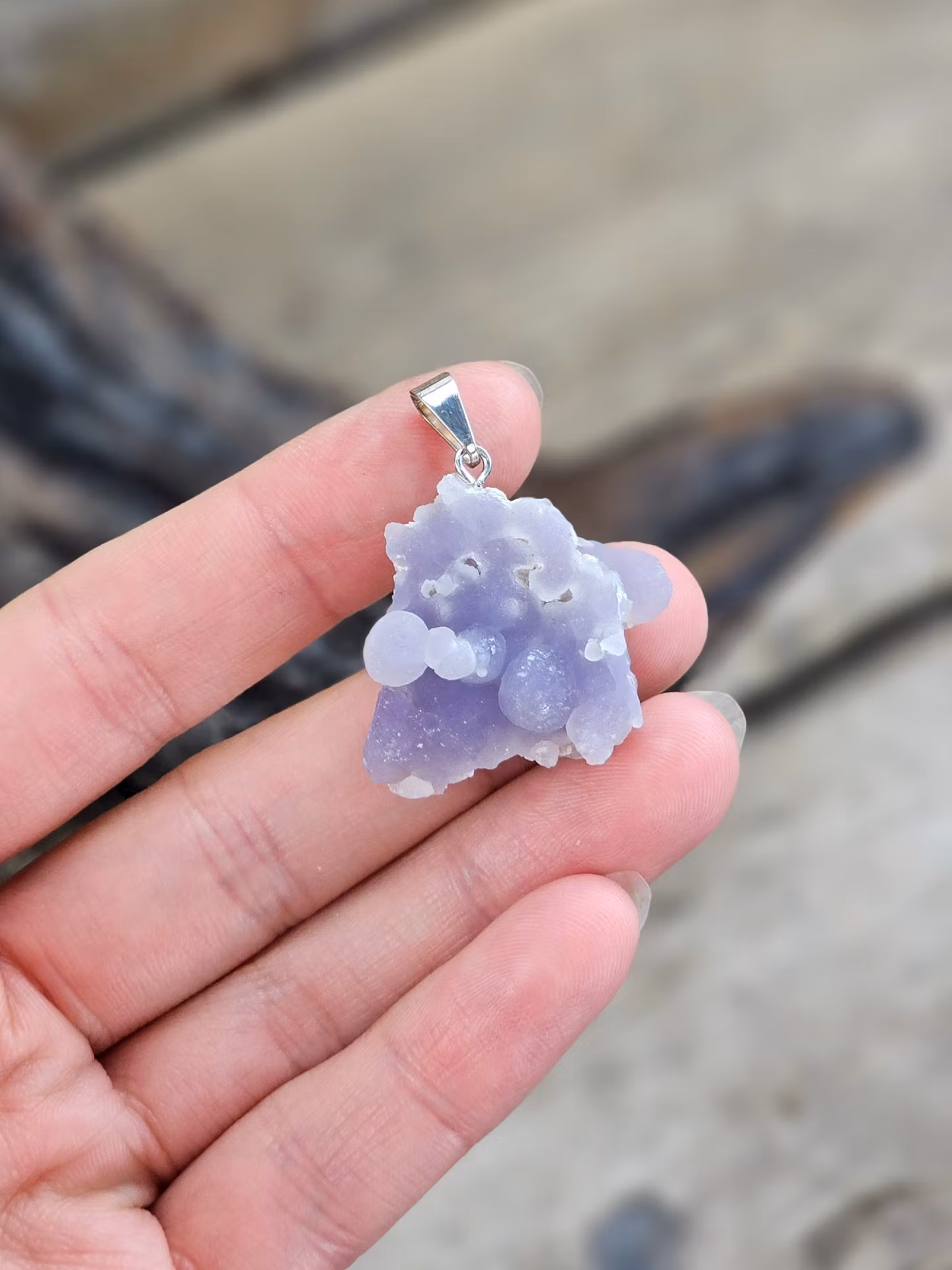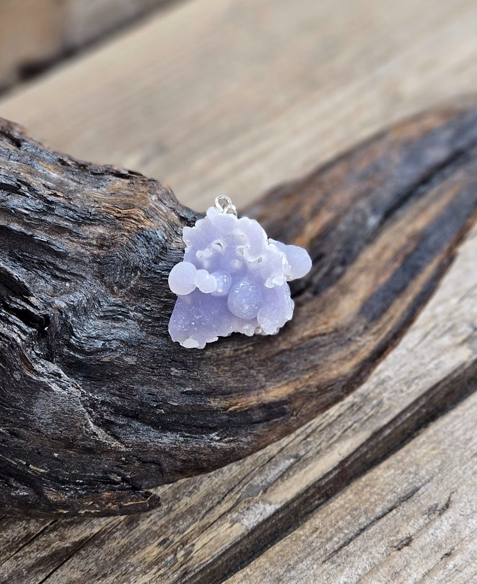 Underbart hänge i naturlig Druvagat (även kallad Grape Agat) med hänge i äkta silver. Kedja ingår ej. Du köper smycket enligt text & bild. Tänk på att kristaller kommer från naturen, små skillnader kan därför förekomma i produktens utseende på grund av dess naturmaterial. Färger kan skilja sig beroende på hur ljuset faller ner på produkten samt även mellan olika bildskärmar m.m.