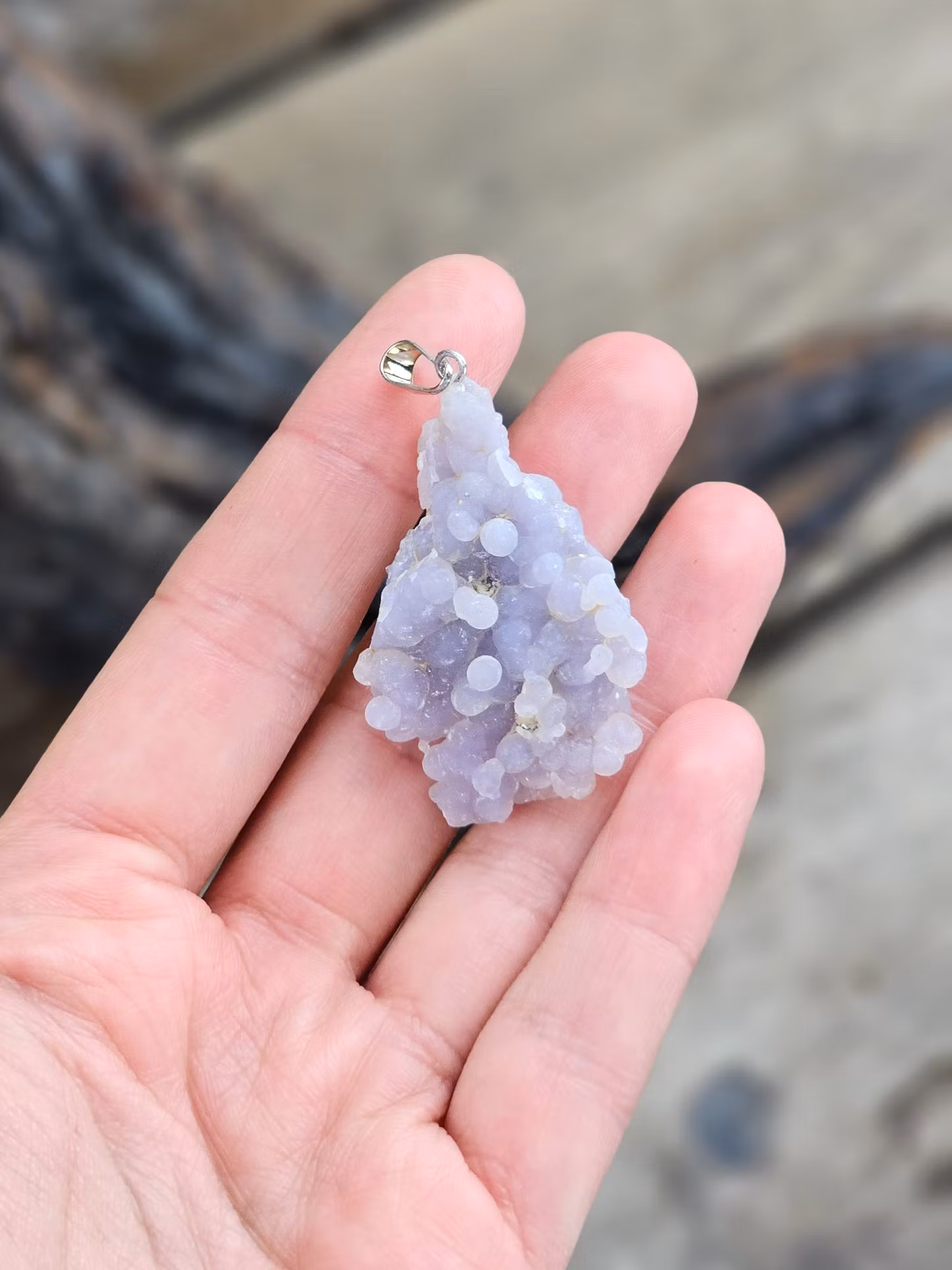 Underbart hänge i naturlig Druvagat (även kallad Grape Agat) med hänge i äkta silver. Kedja ingår ej. Du köper smycket enligt text & bild. Tänk på att kristaller kommer från naturen, små skillnader kan därför förekomma i produktens utseende på grund av dess naturmaterial. Färger kan skilja sig beroende på hur ljuset faller ner på produkten samt även mellan olika bildskärmar m.m.