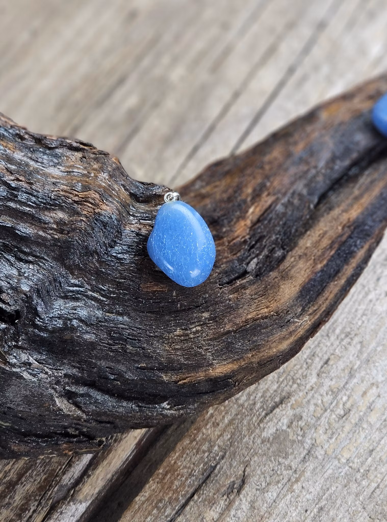 Blå Kvarts trumlad, silverpläterat hänge