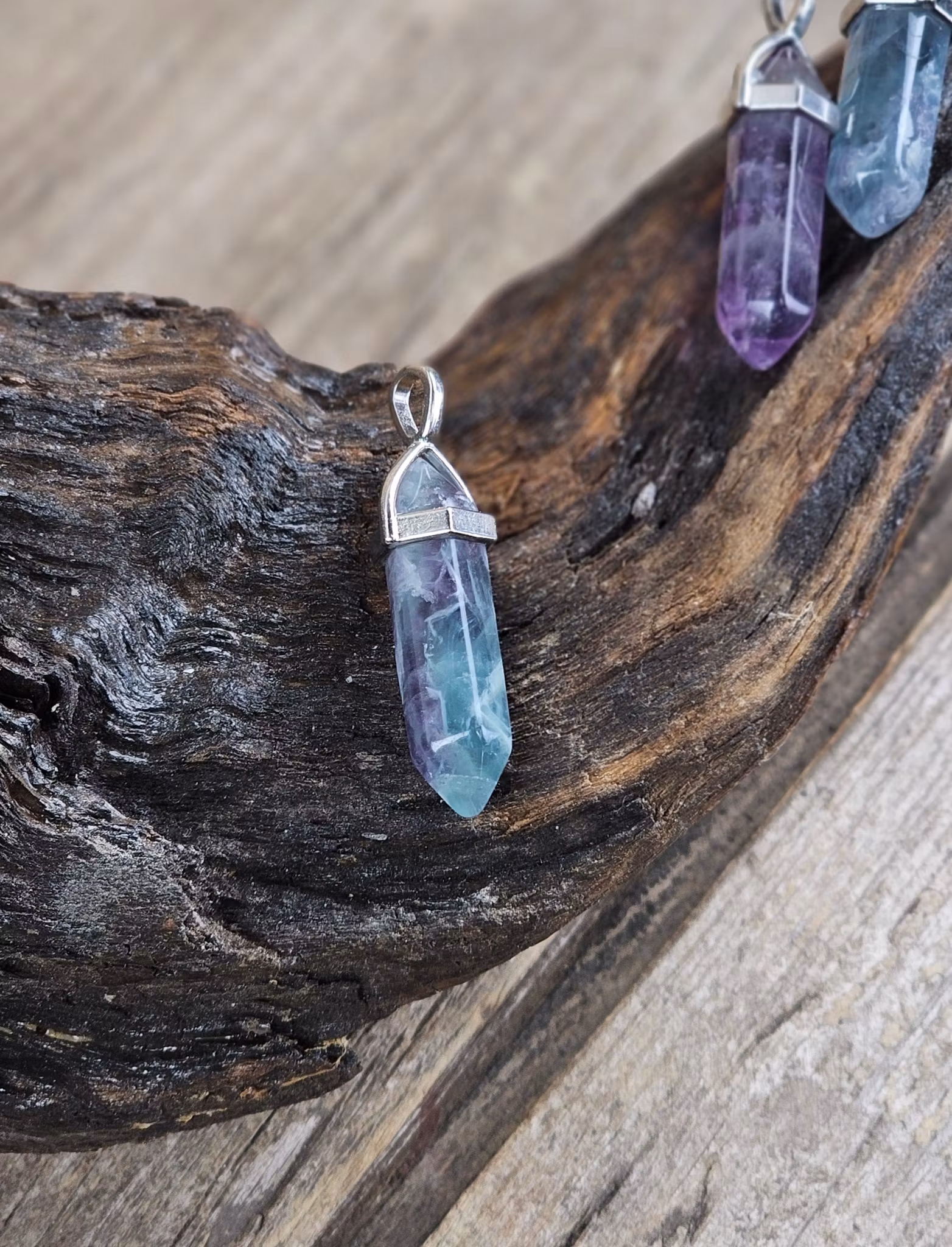 Fluorit polerad spets, silverpläterat hänge
