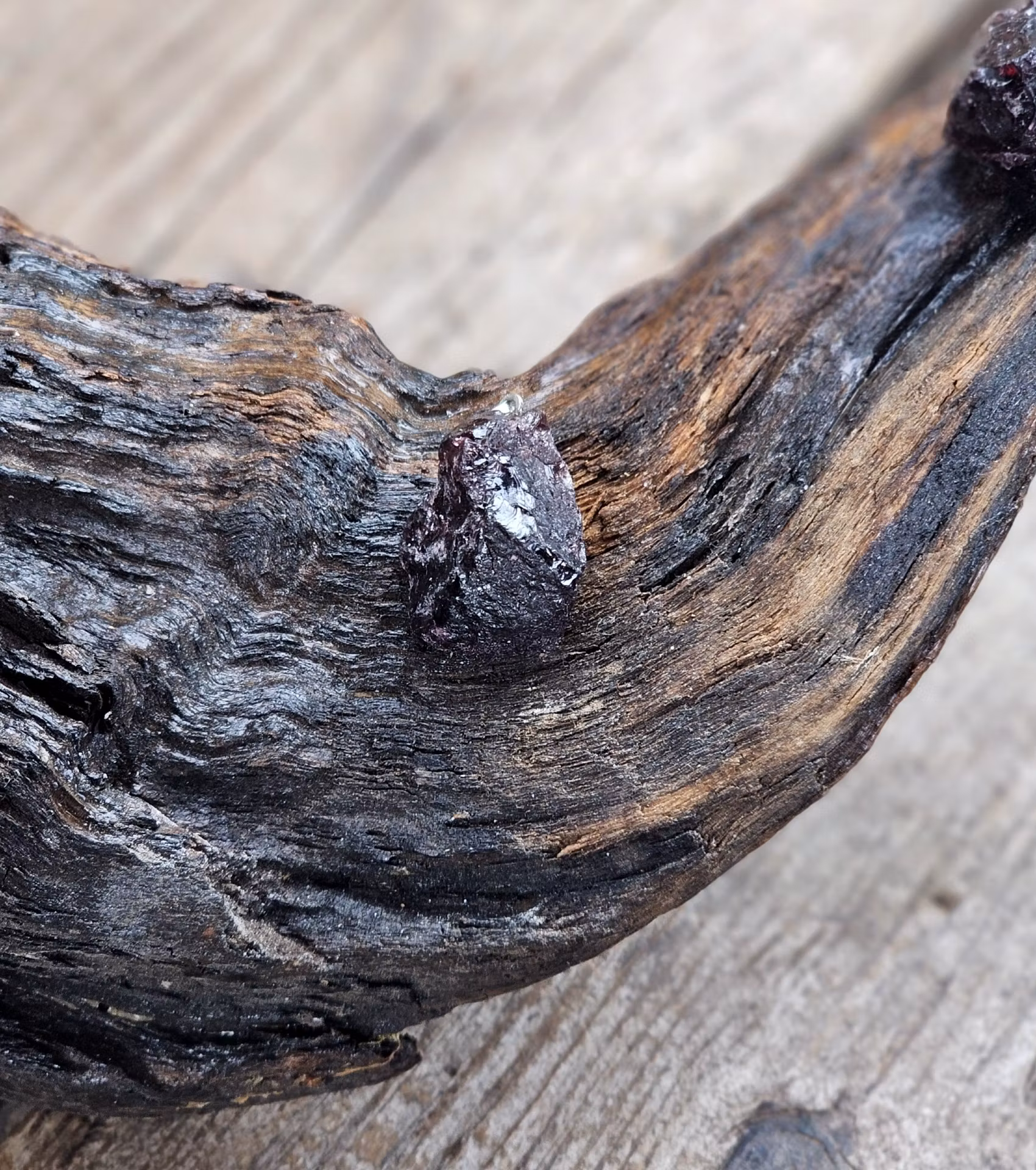 Vackert silverpläterat hänge med naturlig rå Granat. De varierar i utseende. Säljes styckvis. Du köper slumpvis liknande smycke enligt text & bild ovan. Tänk på att kristaller kommer från naturen & naturliga sprickor & ojämnheter kan förekomma. Färger kan skilja sig beroende på hur ljuset faller ner på produkten samt även mellan olika bildskärmar m.m.