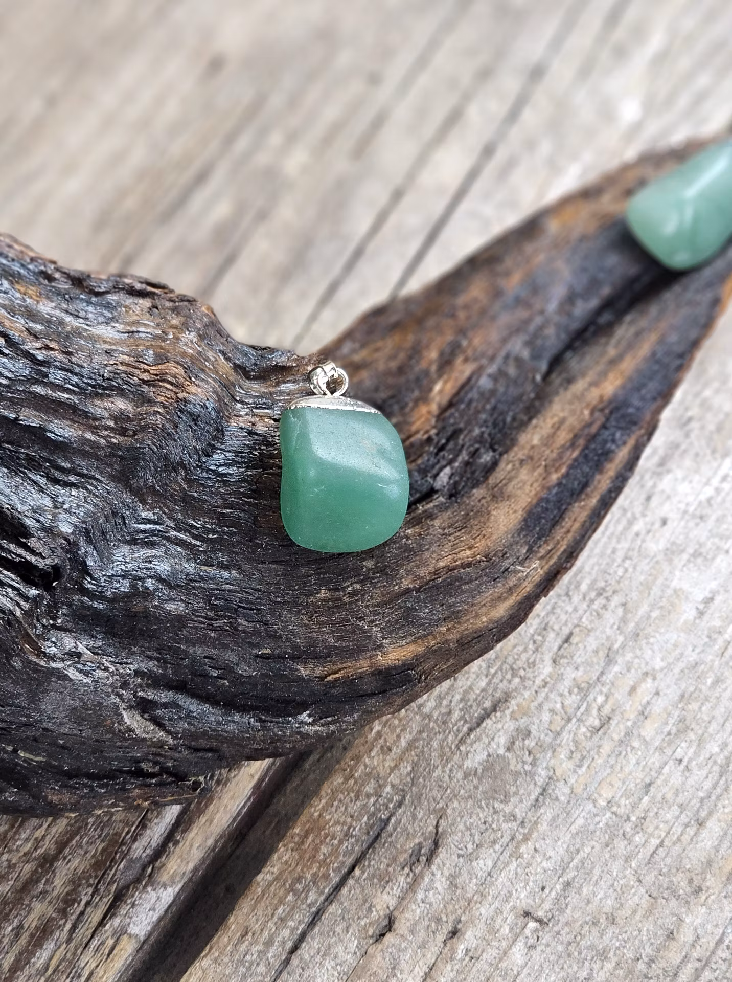 Jättefint silverpläterat hänge med vacker trumlad Grön Aventurin. De varierar i utseende och form. Säljes styckvis. Kedja ingår ej. Du köper ett smycke enligt text & bild. Tänk på att kristaller kommer från naturen, små skillnader kan därför förekomma i produktens utseende på grund av dess naturmaterial. Färger kan skilja sig beroende på hur ljuset faller ner på produkten samt även mellan olika bildskärmar m.m.