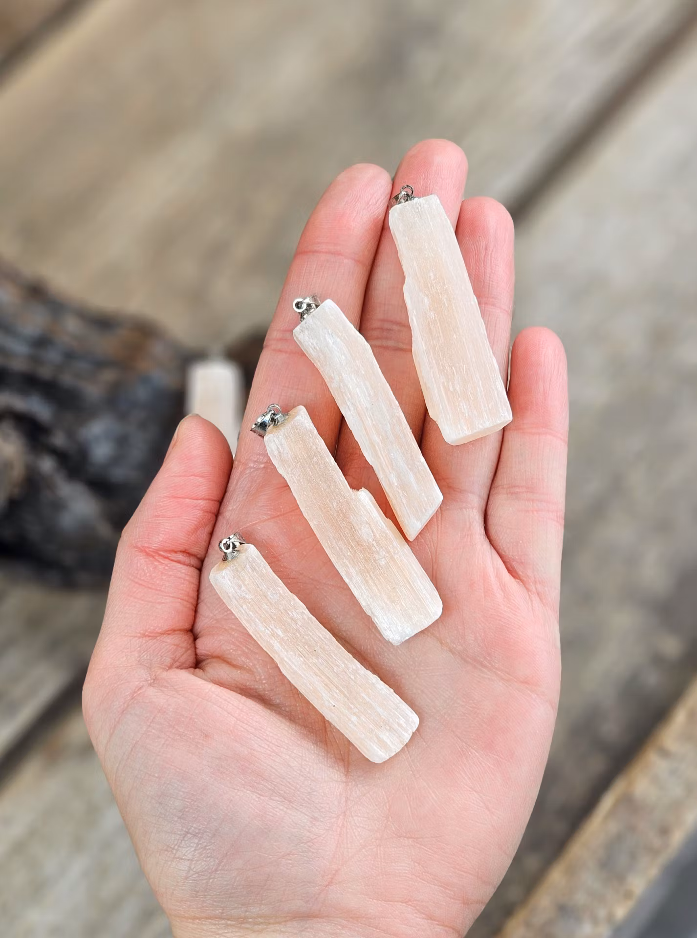 Jättefina silverpläterade hängen med naturlig rå Orange Selenit. De varierar i utseende. Säljes styckvis. Du köper slumpvis liknande smycke enligt text & bild ovan. Tänk på att kristaller kommer från naturen & naturliga sprickor & ojämnheter kan förekomma. Färger kan skilja sig beroende på hur ljuset faller ner på produkten samt även mellan olika bildskärmar m.m.