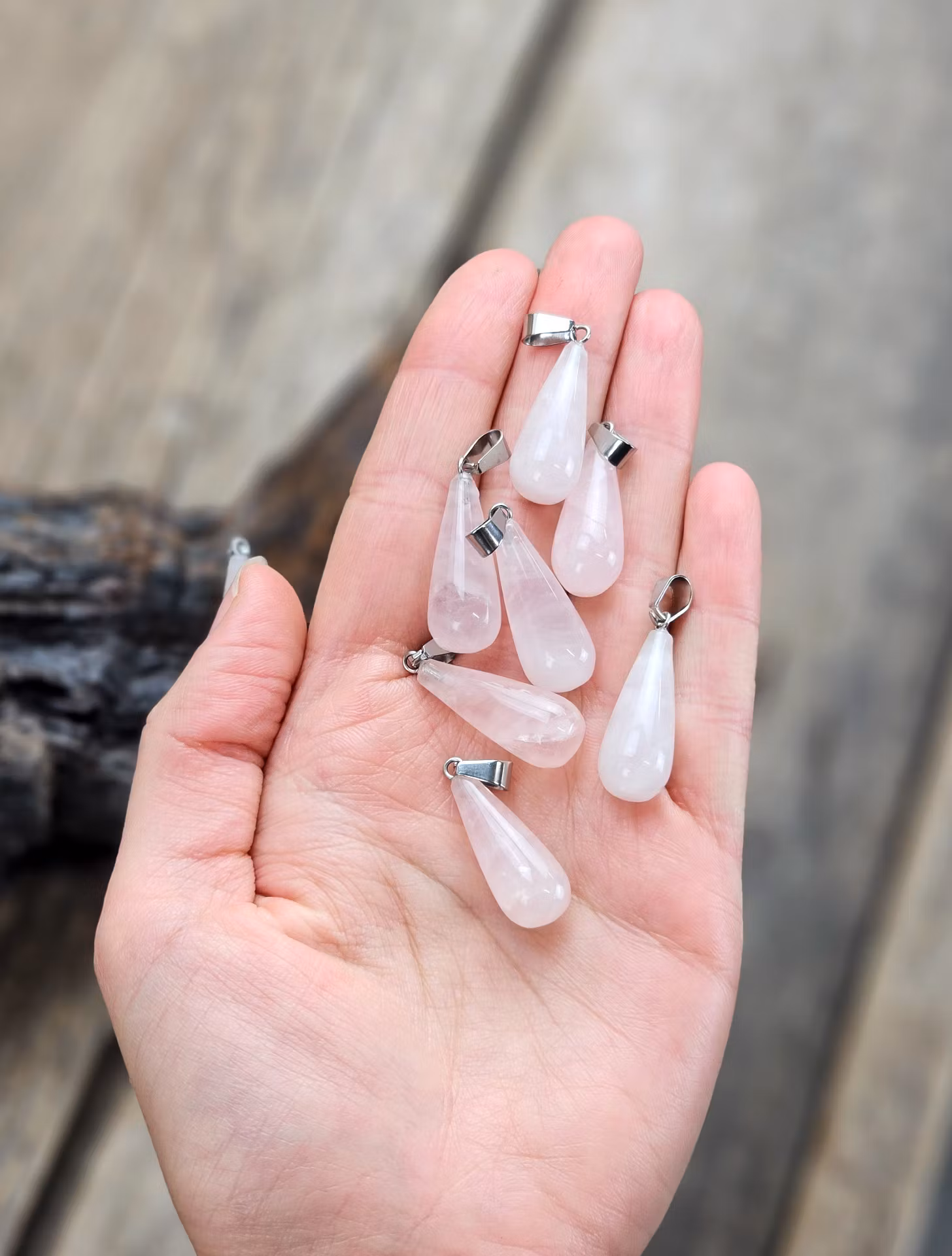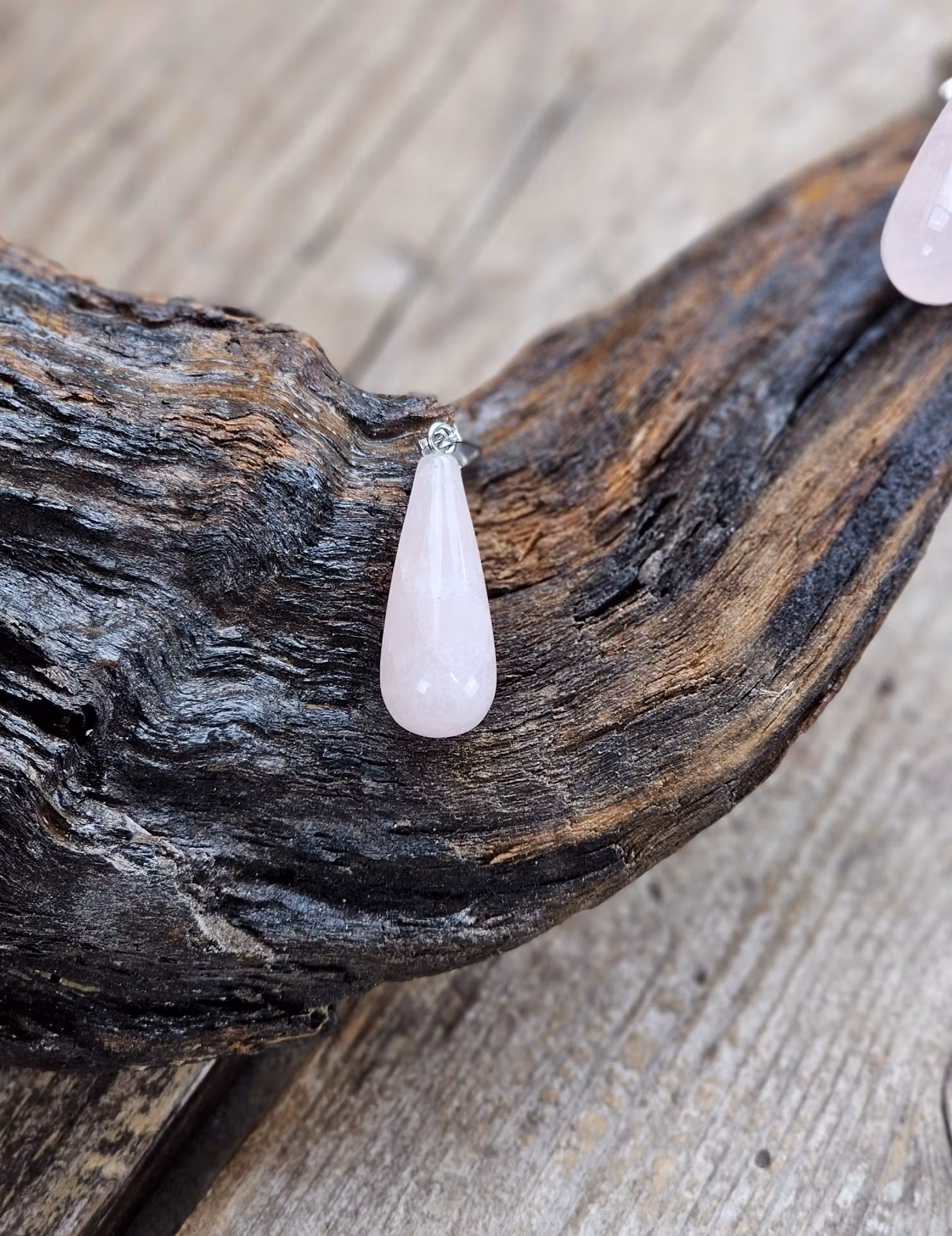 Vackert silverpläterat hänge med en fin droppe i Rosenkvarts. De varierar i utseende. Säljes styckvis. Du köper ett smycke enligt text & bild ovan. Tänk på att kristaller kommer från naturen, små skillnader kan därför förekomma i produktens utseende på grund av dess naturmaterial. Färger kan skilja sig beroende på hur ljuset faller ner på kristallen samt även mellan olika bildskärmar m.m.