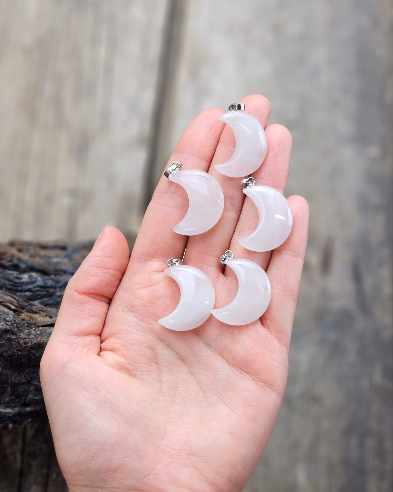 Stor Måne Rosenkvarts, silverpläterat hänge