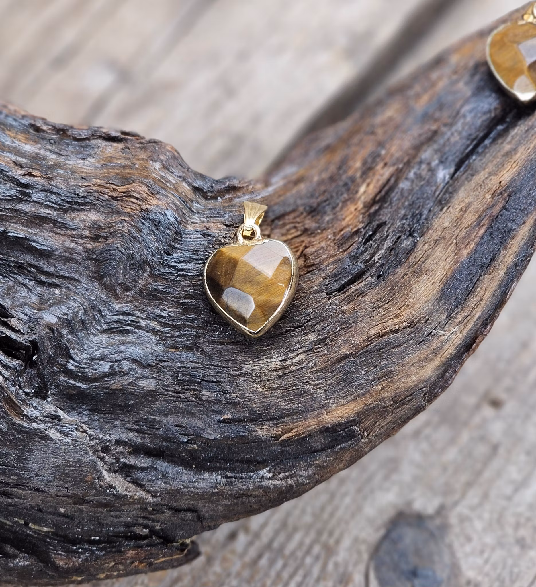 Tigeröga facetterat hjärta, guldpläterat hänge