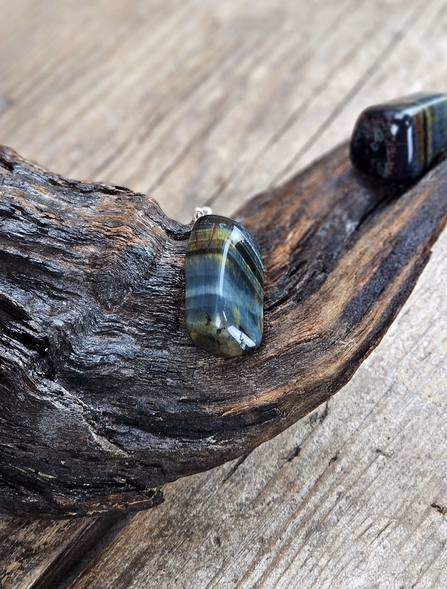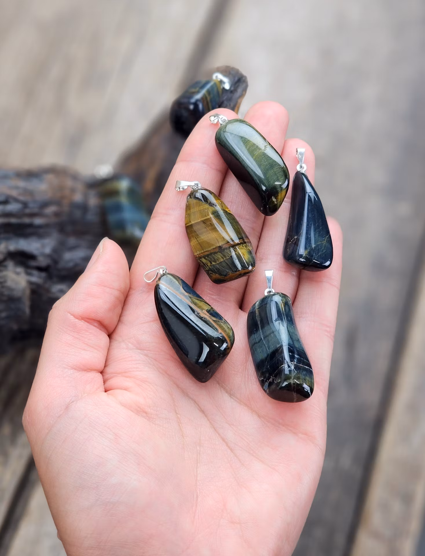 Vackert silverpläterat hänge med trumlad Falköga. De varierar i utseende och form. Säljes styckvis. Kedja ingår ej. Du köper ett smycke enligt text & bild. Tänk på att kristaller kommer från naturen, små skillnader kan därför förekomma i produktens utseende på grund av dess naturmaterial. Färger kan skilja sig beroende på hur ljuset faller ner på produkten samt även mellan olika bildskärmar m.m.