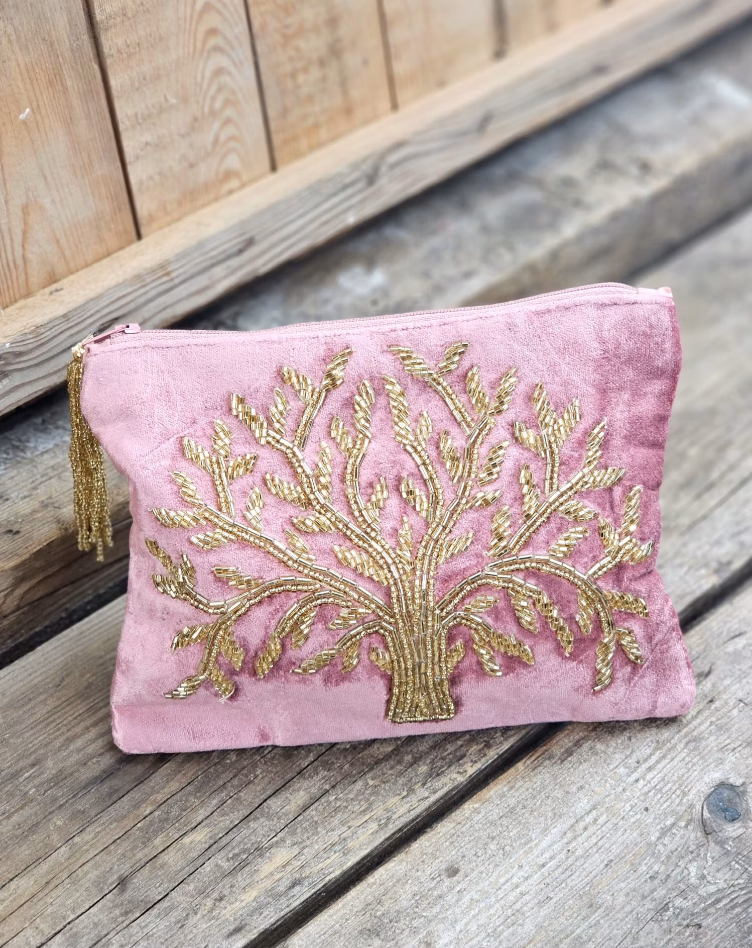 Vacker necessär med fina broderier och pärlor. Med symbolen Tree Of Life, Livets träd. I olika religioner och andliga traditioner är Livets träd en kraftfull symbol som har funnits i århundraden och över hela världen i olika religiösa och andliga traditioner. De är idealiska för att förvara väsentliga saker som smycken, kristaller, smink, pennor, toalettartiklar och andra småsaker. Den mjuka sammetsstrukturen och den dekorativa tofsen på dragkedjan ger en touch av lyx till praktisk förvaring. Säljes styckvis, smycken/kristaller ingår ej. Du köper en slumpvis liknande produkt enligt text & bild ovan. Tänk på att små skillnader kan förekomma. Färger kan skilja sig beroende på hur ljuset faller ner på produkten samt även mellan olika bildskärmar m.m.