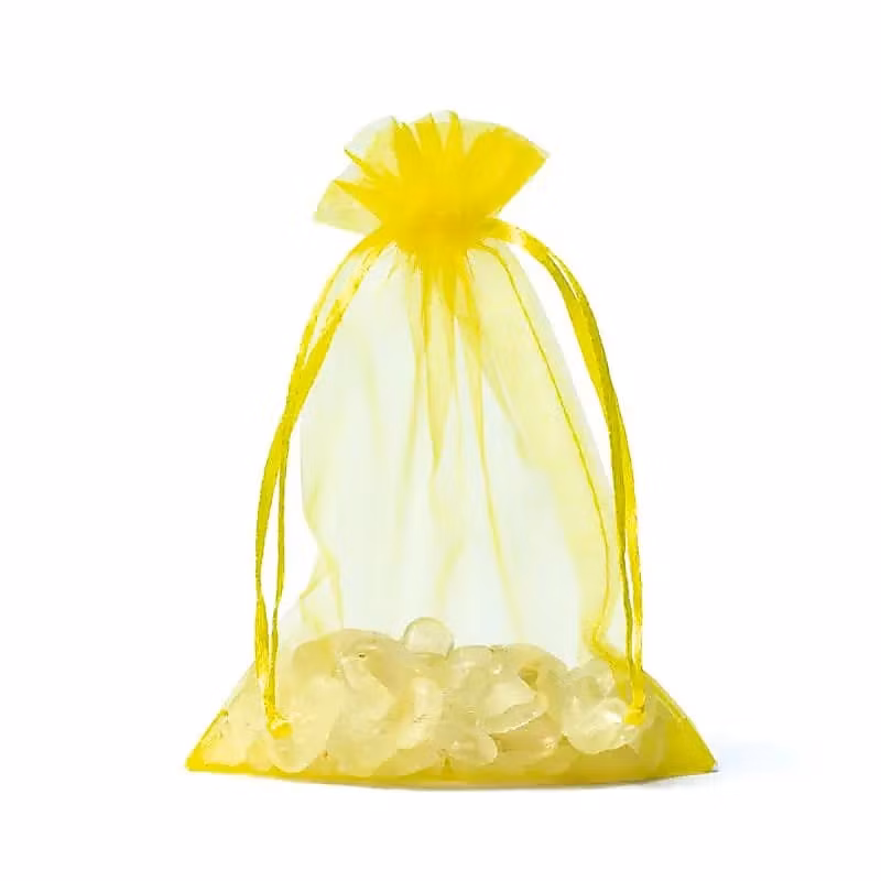 Fin organzapåse i gul färg utan tryck. Denna påse är idealisk att inkludera när du vill ge bort en gåva, såsom några vackra trumlade stenar eller ett armband eller smycke. En enklare förvaringspåse till saker som smycken, kristaller och andra små saker som är värdefullt för dig. Den mjuka transparenta påsen stängs enkelt ihop med dragsnöret vilket gör det till en praktisk förvaring. Säljes styckvis, smycken/kristaller ingår ej. Du köper en produkt enligt text & bild ovan. Färger kan skilja sig beroende på hur ljuset faller ner på produkten samt även mellan olika bildskärmar m.m.