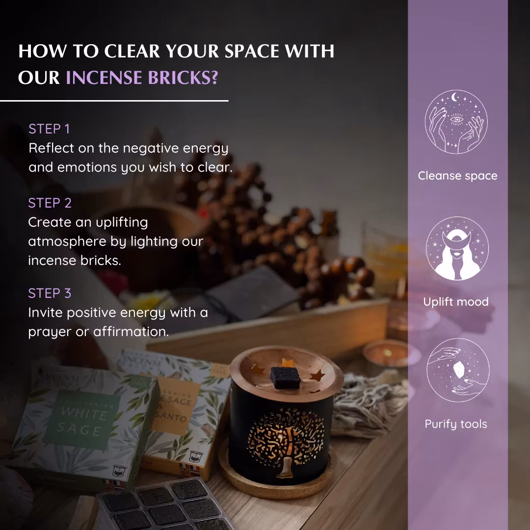 Hur du använder: Denna typ av rökelse måste användas ihop med rökelsebrännare anpassad för dessa rökelsebrickor. De är speciellt utformade för att nå den adekvata temperaturen för aromspridning av Aromafume rökelsebrickor. Andra sorters rökelsebrännare är inte lämpliga. När du tänt ett värmeljus och placerat i brännaren, placera då rökelsebrickan uppe på kopparplattan. Låt ljuset brinna i ca. 45-60 min. När rökelsebrickorna värms upp frigörs rökelsedoften. Rökelsebrickan blir djupt svart och hård vid användning, den kommer inte att smälta. Tänk på att diffusern blir varm, rör den inte. Kassera sedan använda brickor med biologiskt nedbrytbart avfall. Informationsbroschyr ingår på engelska, holländska, tyska, italienska, franska och spanska. Lämna aldrig tända rökelser obevakade. Håll utom räckhåll från barn och djur.