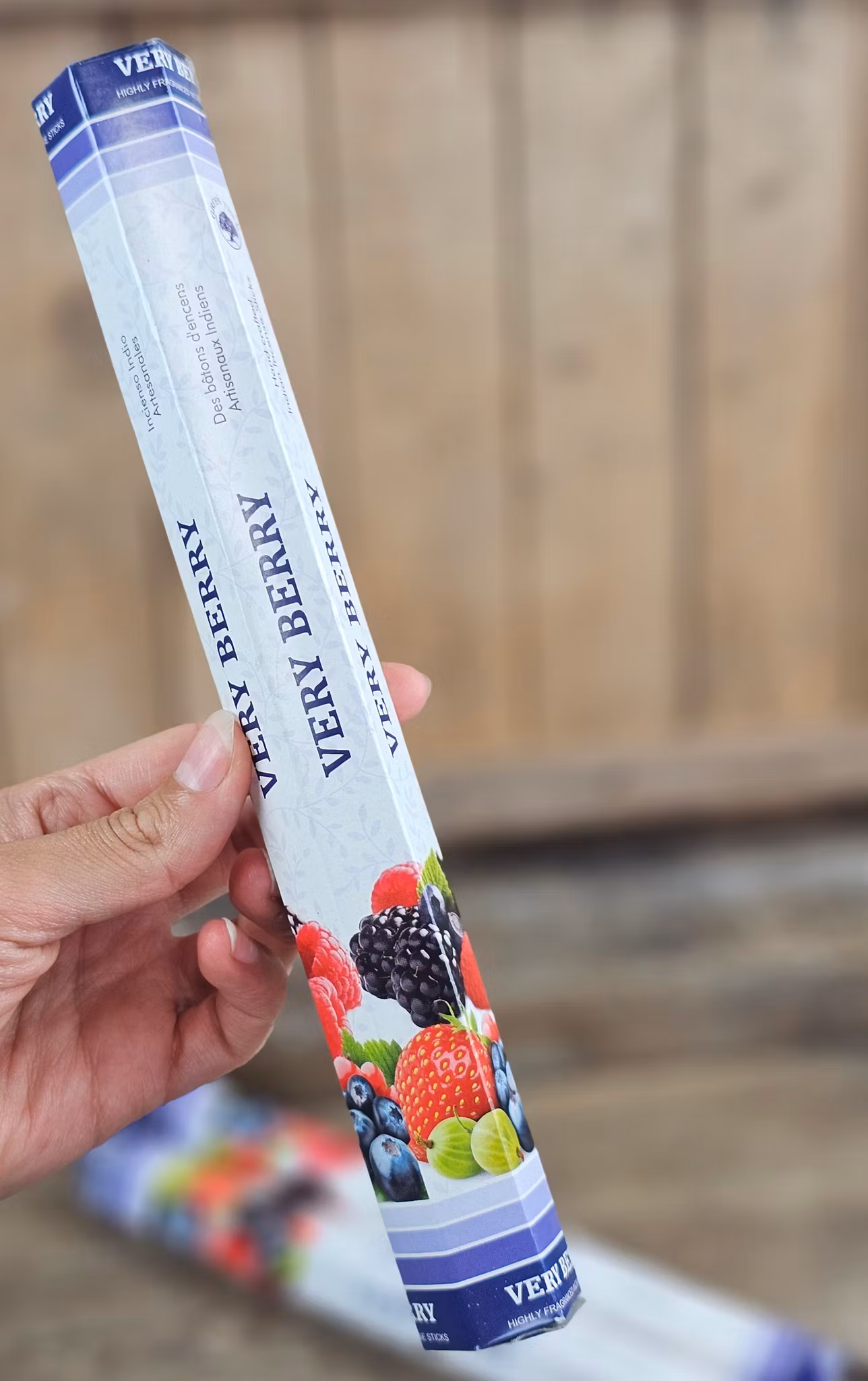 Doft: Very Berry. Underbar fruktig och söt doft. En ton av frisk bärdoft, odlad på gränsen mellan vår och sommar. För dig som vill ha något annat än kryddiga blandningar. Saftigt söt och full av olika bärtoner. Handgjord rökelseblandning som kombinerar aromatiska örter, hartser och eteriska oljor, vilket skapar en fängslande doft som främjar avkoppling och positiv energi. Masala rökelse, som kommer från Indien, skapas genom att blanda naturliga ingredienser för att bilda en pasta, vilket resulterar i en längre hållbar och rikare arom som förstärker din meditation och andliga övningar.