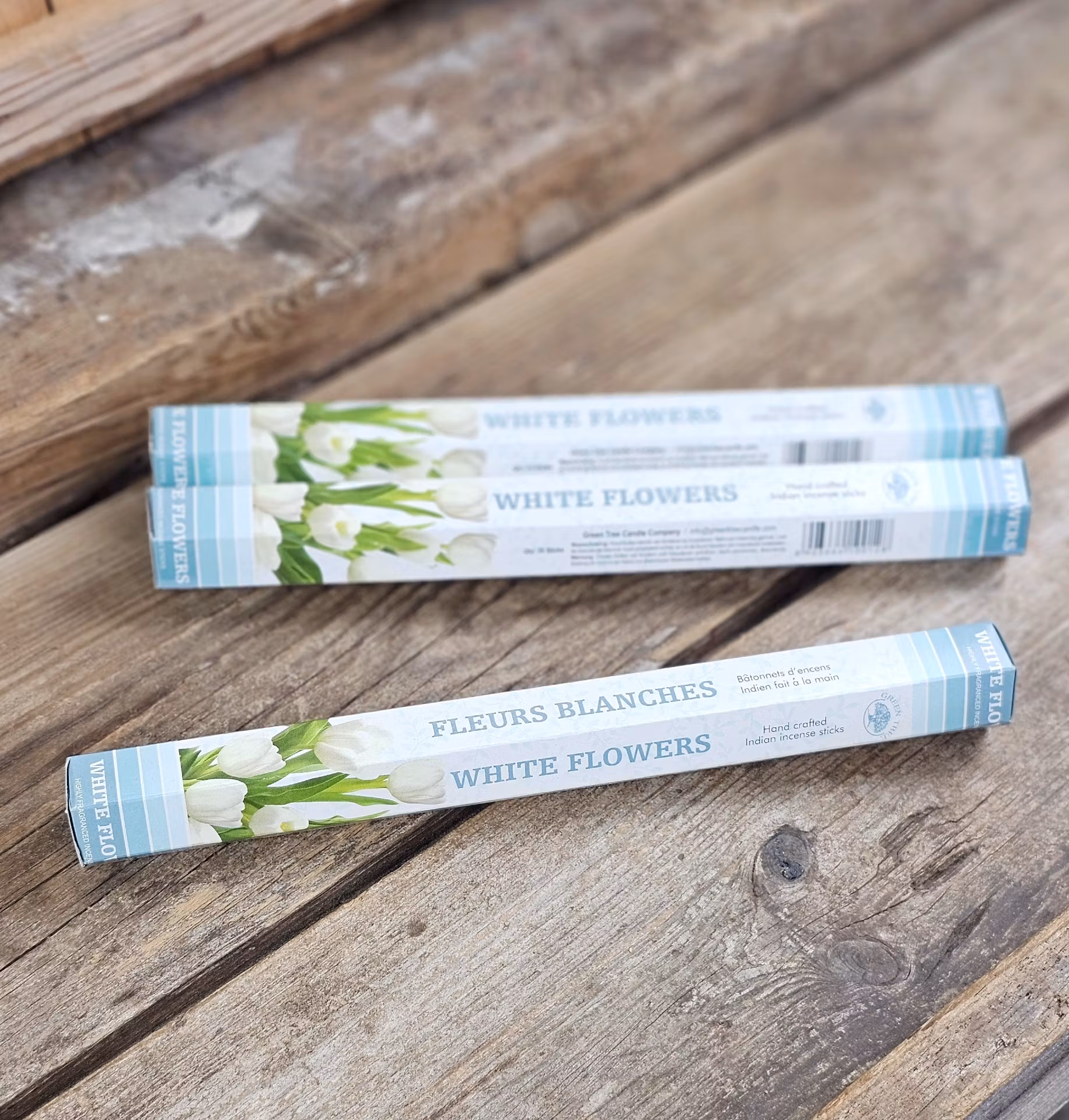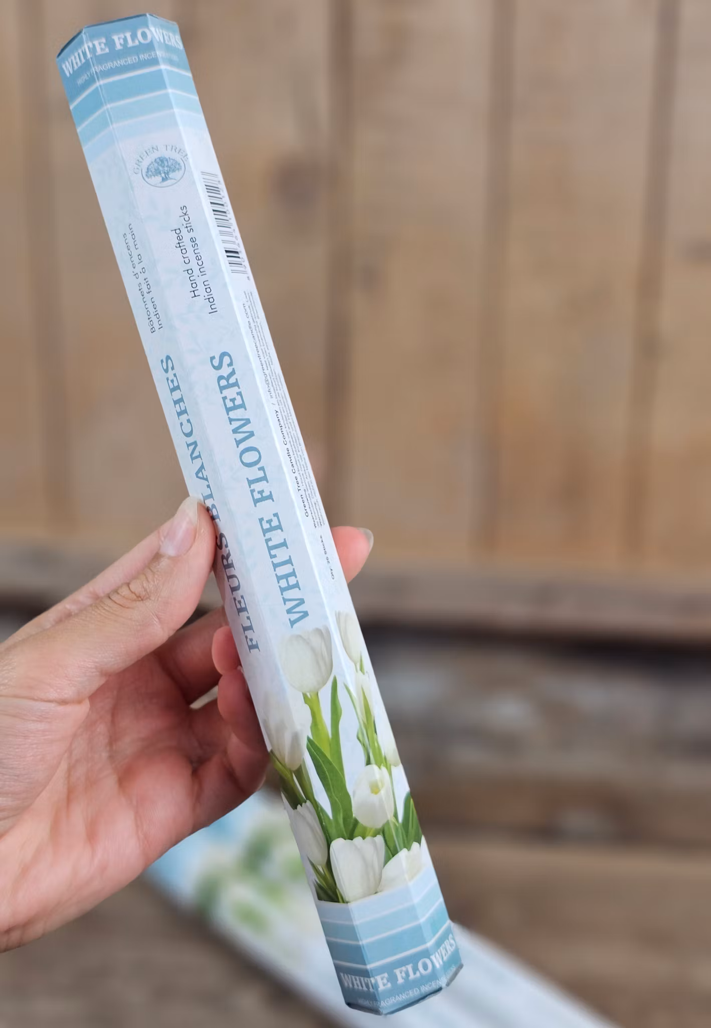 Doft: White Flowers. Doften av vita blommor ger dig en blandning av olika vita blommor och jasmin. En delikat blomdoft som av denna anledning också är en mycket lämplig doft för att fräscha upp t.ex. sovrummet. Handgjord rökelseblandning som kombinerar aromatiska örter, hartser och eteriska oljor, vilket skapar en fängslande doft som främjar avkoppling och positiv energi. Masala rökelse, som kommer från Indien, skapas genom att blanda naturliga ingredienser för att bilda en pasta, vilket resulterar i en längre hållbar och rikare arom som förstärker din meditation och andliga övningar.