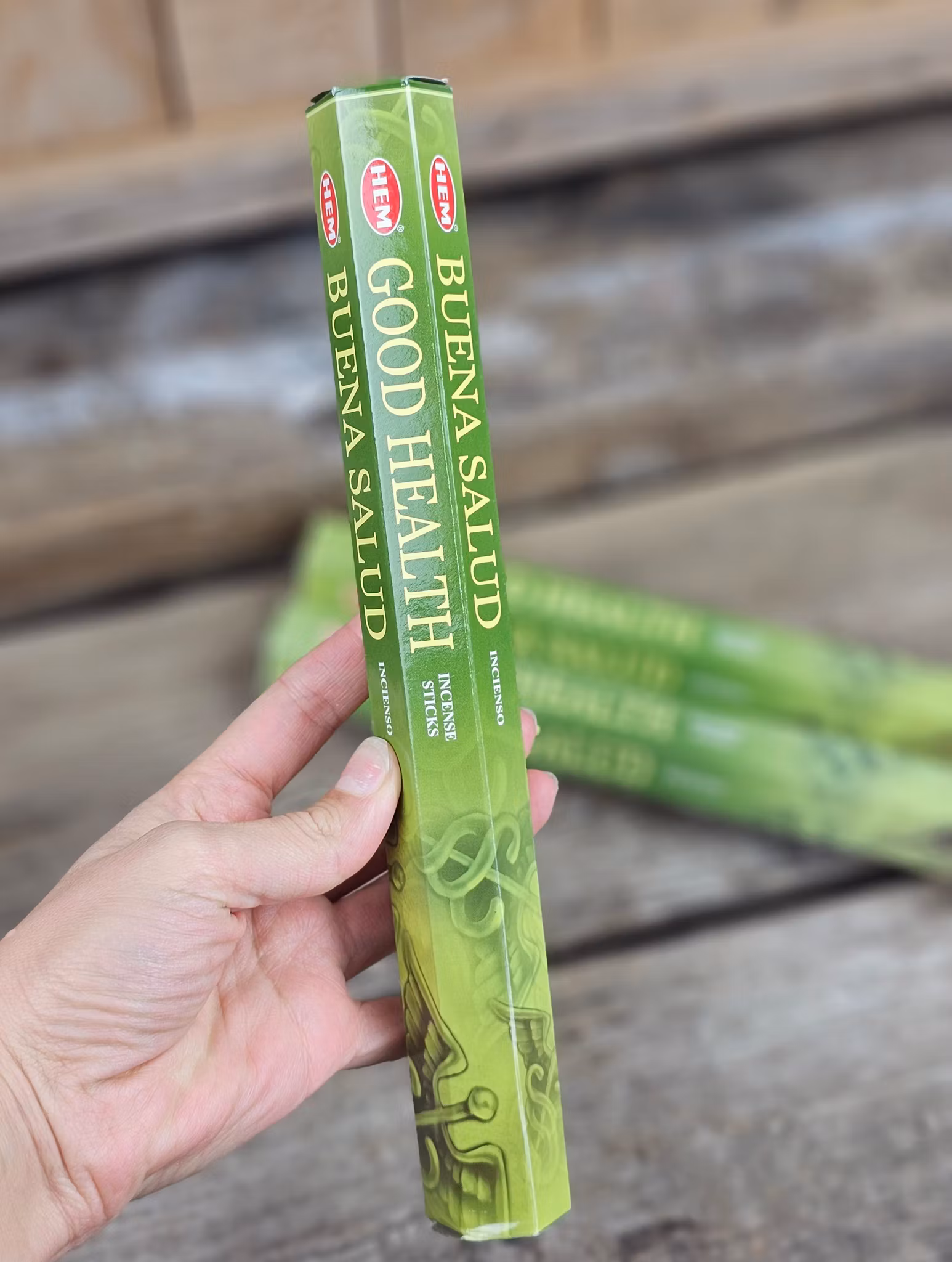 HEM Good Health – frisk, mild och harmonisk doft med upplyftande energi. Vegansk och cruelty free. Perfekt för balans, välmående och en positiv atmosfär. Säljs per förpackning (ca 20 pinnar).