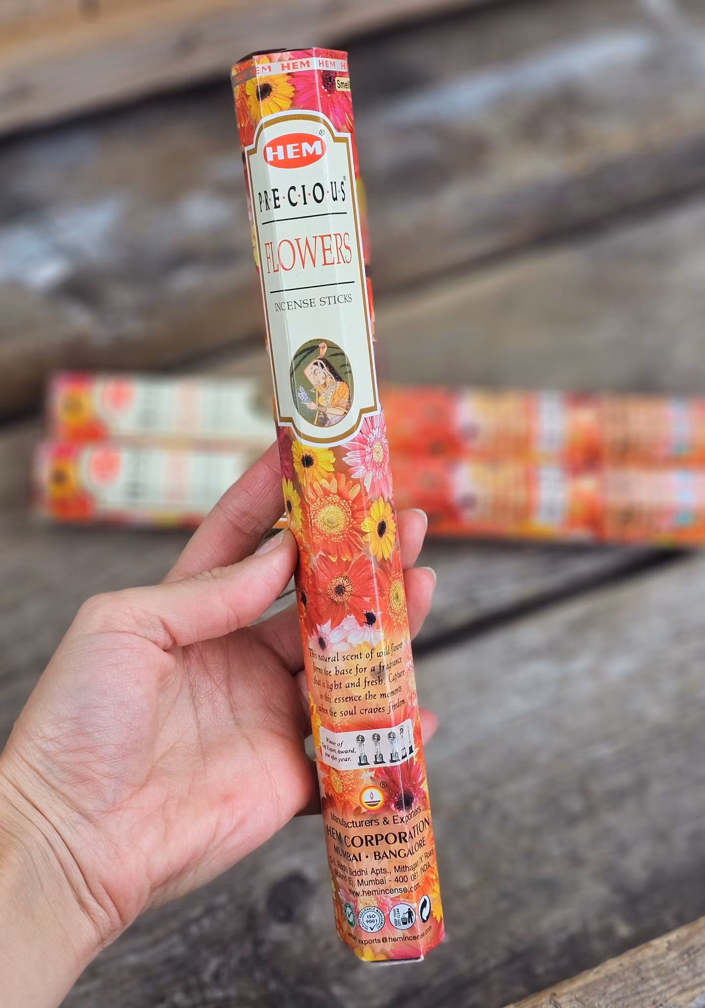 Märke: HEM. HEM är bland de främsta globala ledarna inom tillverkning och export av rökelser. I över tre decennier har de skapat högkvalitativa rökelseprodukter till mer än 70 länder. De är kända och etablerade för dess kvalitetsprodukter. HEM har överösts med kärlek och utmärkelser över hela världen för sitt mångsidiga utbud av produkter. HEM har dessutom belönats med "Top Exporters"-märket för rökelsepinnar av "Export Promotion Council for Handicraft" (EPCH) tre gånger.