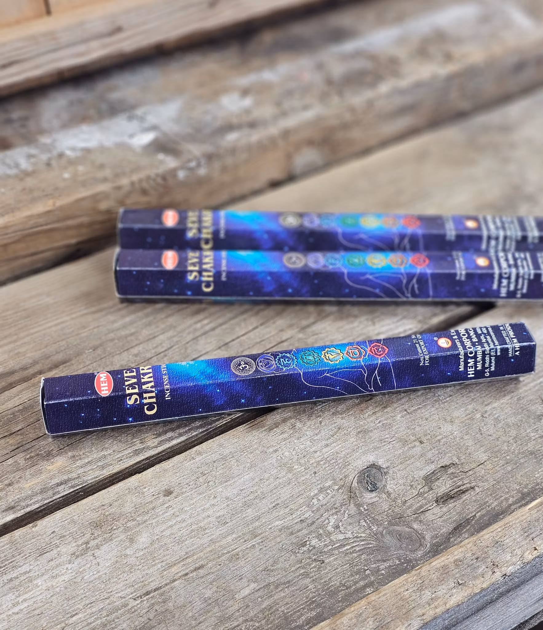 HEM Seven Chakras – balanserad, spirituell och upplyftande doft med harmonisk energi. Vegansk och cruelty free. Perfekt för meditation, fokus och inre balans. Säljs per förpackning (ca 20 pinnar).