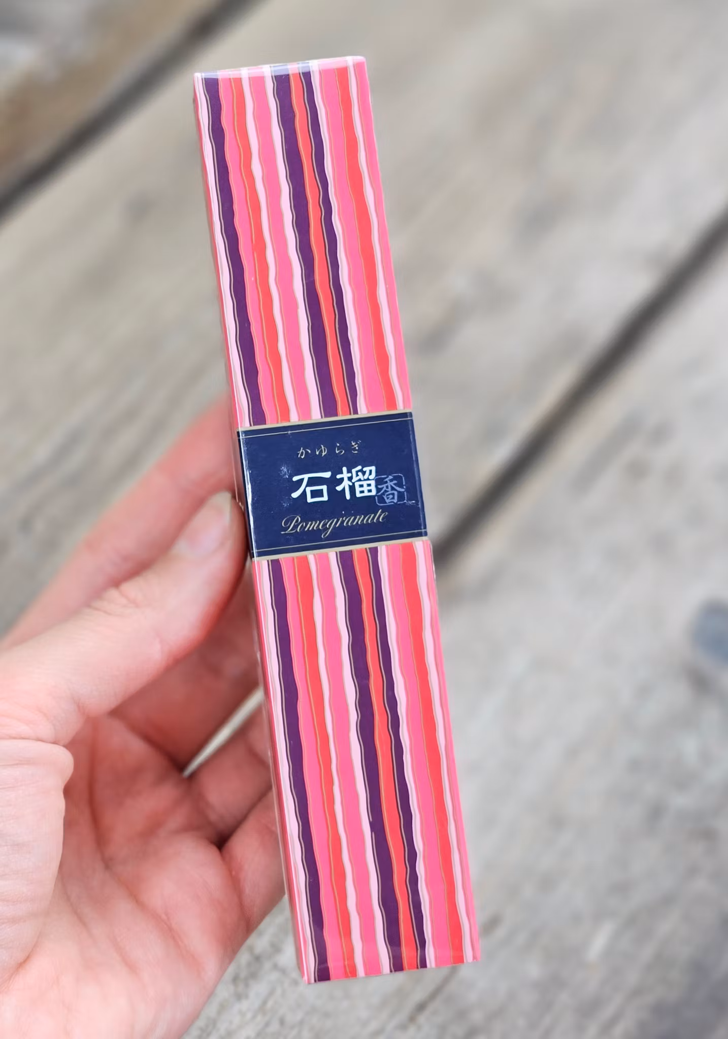 Doft: Pomegranate. Frisk och syrlig doft av granatäpple. En lyxig rökelse med lyxig förpackning, för värdefulla stunder.
