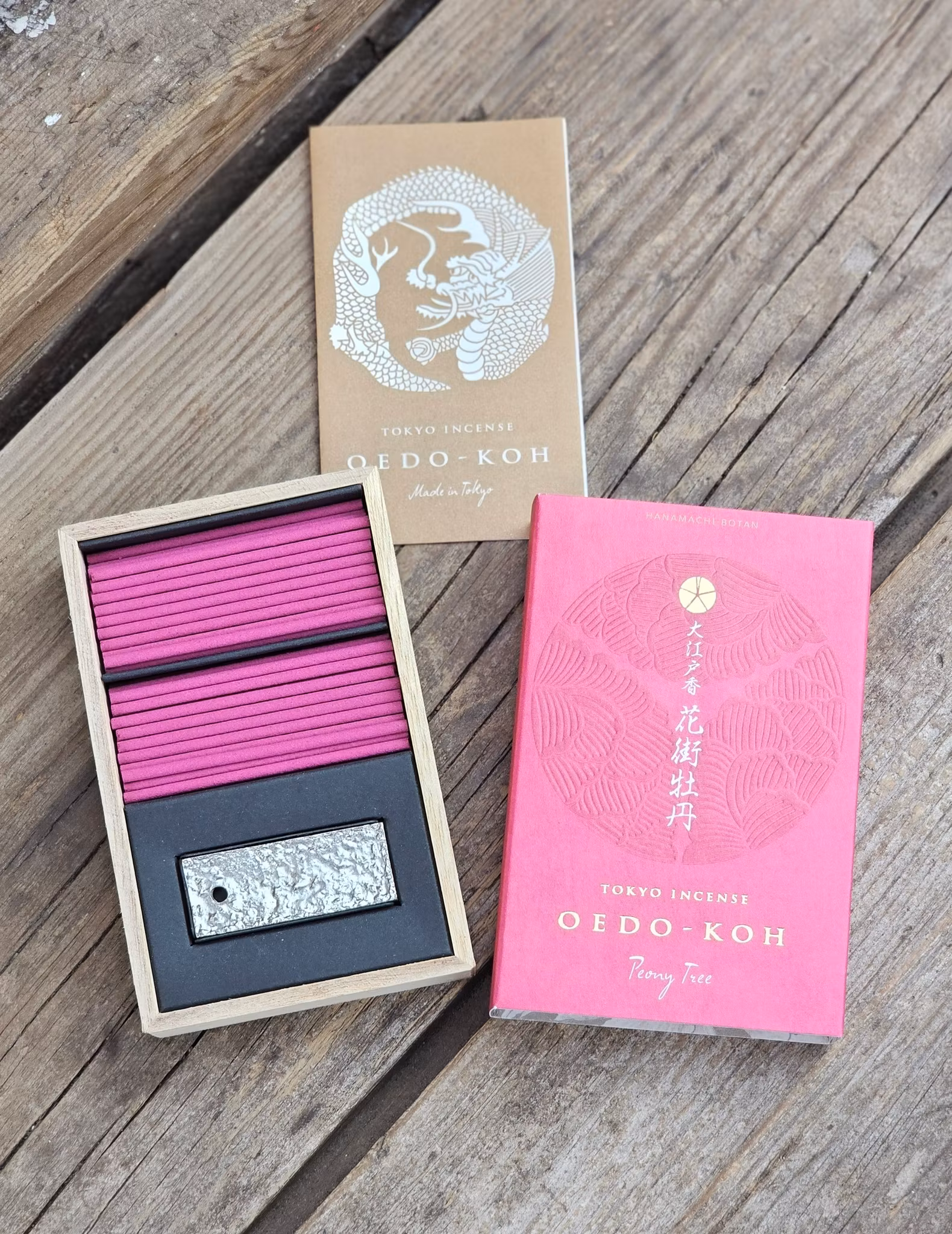 Pionen, "blommornas drottning", framkallar en raffinerade och försvinnande atmosfär. Den förtrollande pionen åtnjöt enorm popularitet i Edo. Dess förtrollande form påminner om en vacker geisha, och när du tittar på en pion kan du nästan höra musiken och se danserna i geishakvarteret. I denna exklusiva värld som är reserverad för ett fåtal privilegierade, sägs det att den tid kunder tillbringade i terummet mättes med rökelsepinnar. En kärleksdryck från geishakvarteret, en förtrollning av den flytande världen... den delikata doften av pion har en outtalad charm. En spännande rökelse som för dig tillbaka i tiden i en annan era.