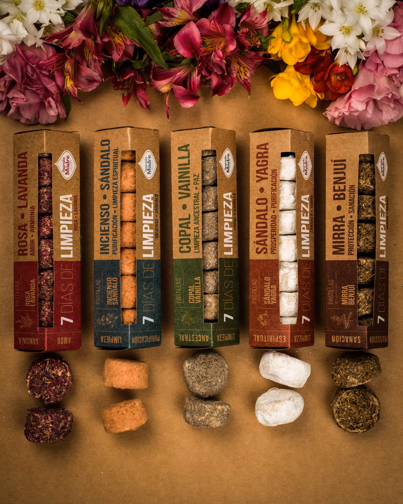 Märke: Sagrada Madre. Sagrada Madre betyder "Helig Moder" (Pancha Mama) och detta namn speglar hur de behandlar jordens resurser. Det är ett märke med väldoftande och högkvalitativa rökelser som tillverkas i Argentina. Förutom träkol använder Sagrada Madre en doftfri fruktbaserad biomassa som förbränningsmedel. Varje år slängs över 100 ton fruktbiomassa från industriell bearbetning såsom juicetillverkning. Istället för att låta dessa material gå till spillo, återanvänder Sagrada Madre dem effektivt i deras rökelser. En 100% unik naturprodukt, handgjord i Argentina av pulveriserade örter, hartser (kåda) och blommor, ihop med ett växtbaserat bindemedel. Alla varianter av Sagrada Madre rökelse är noggrant förpackade i attraktivt naturligt förpackningsmaterial för att skapa så liten påverkan på miljön som möjligt.