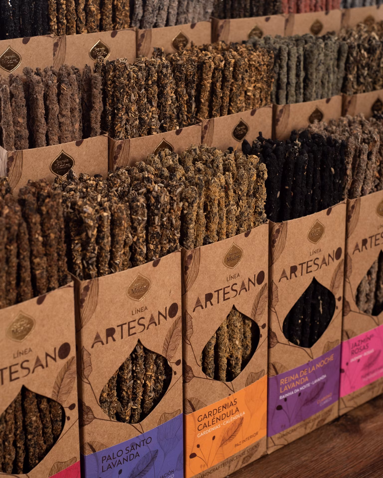 Artesano Line är Sagrada Madres prova-på kollektion med rökelsepinnar som säljs styckvis för att du ska kunna upptäcka, plocka ihop och prova dig fram till dina favoriter. Rökelsepinnarna ur Artesano Line säljes styckvis och levereras i en papperspåse, uppmärkt med namn.