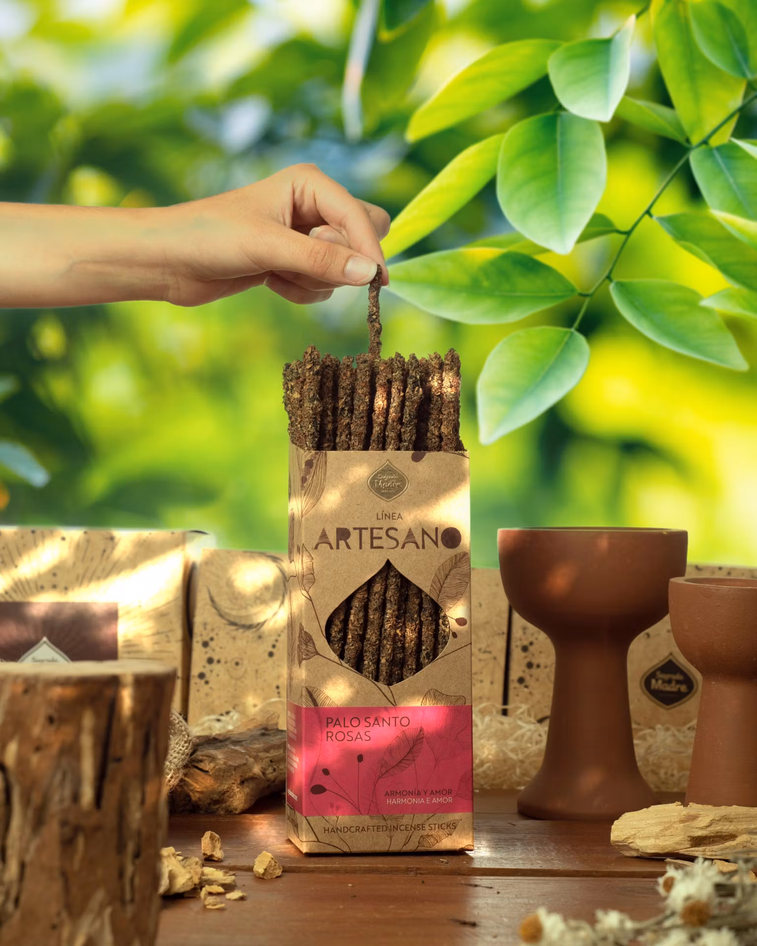 Märke: Sagrada Madre. Sagrada Madre betyder "Helig Moder" (Pancha Mama) och detta namn speglar hur de behandlar jordens resurser. Det är ett märke med väldoftande och högkvalitativa rökelser som tillverkas i Argentina. Förutom träkol använder Sagrada Madre en doftfri fruktbaserad biomassa som förbränningsmedel. Varje år slängs över 100 ton fruktbiomassa från industriell bearbetning såsom juicetillverkning. Istället för att låta dessa material gå till spillo, återanvänder Sagrada Madre dem effektivt i deras rökelser. En 100% unik naturprodukt, handgjord i Argentina av pulveriserade örter, hartser (kåda) och blommor, ihop med ett växtbaserat bindemedel. Alla varianter av Sagrada Madre rökelse är noggrant förpackade i attraktivt naturligt förpackningsmaterial för att skapa så liten påverkan på miljön som möjligt.