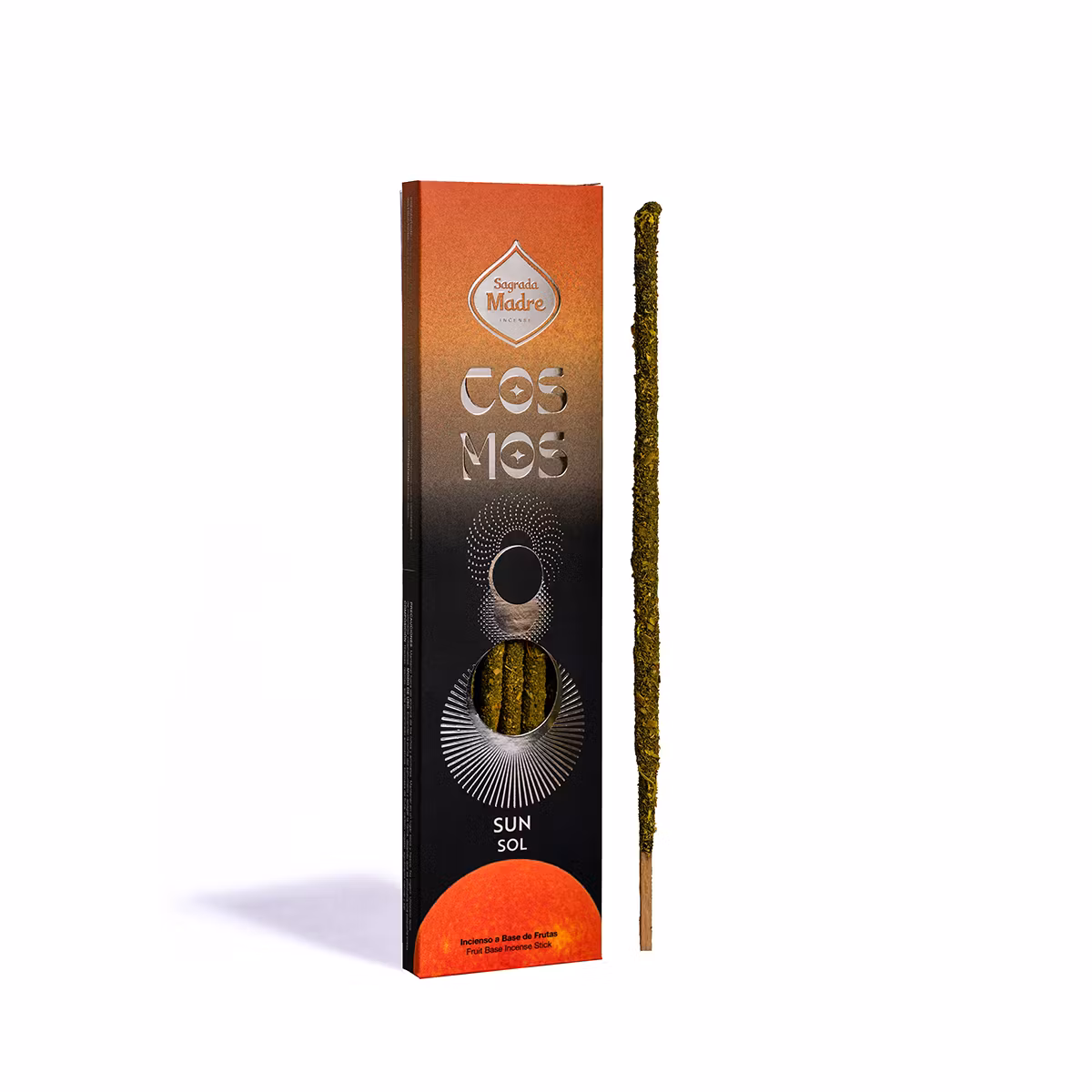 Sagrada Madre Cosmos x Solen skapar en klar, solig citrusatmosfär för vitalitet, fokus och god energi. Hantverksmässigt tillverkade pinnar för renare doft och jämn glöd. Säljs per förpackning (7 rökelsepinnar, ca 23 cm; ca 60 min/pinne). Del av COSMOS-serien – varje doft hedrar en planet och hjälper dig att synka med kosmiska rytmer för kropp, sinne och själ.