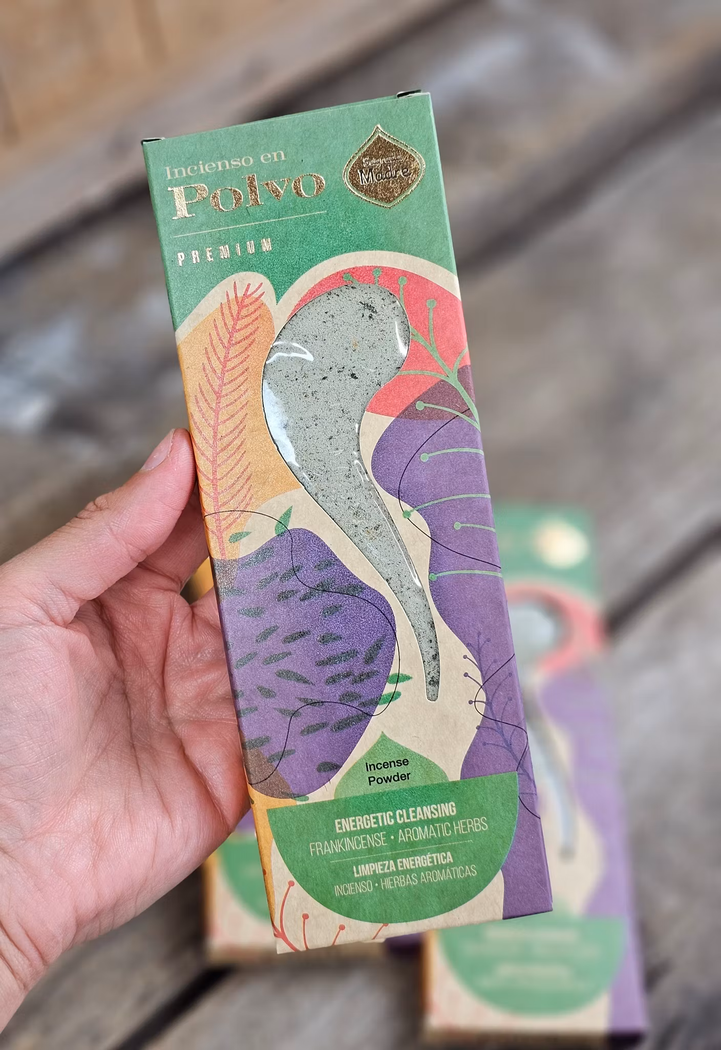 Sagrada Madre rökelsepulver är en 100 % unik naturprodukt, handgjord i Argentina. 100% vegansk, ekologisk. Rökelsepulver avger minimalt med rök och är ett härligt sätt att bränna rökelse på.