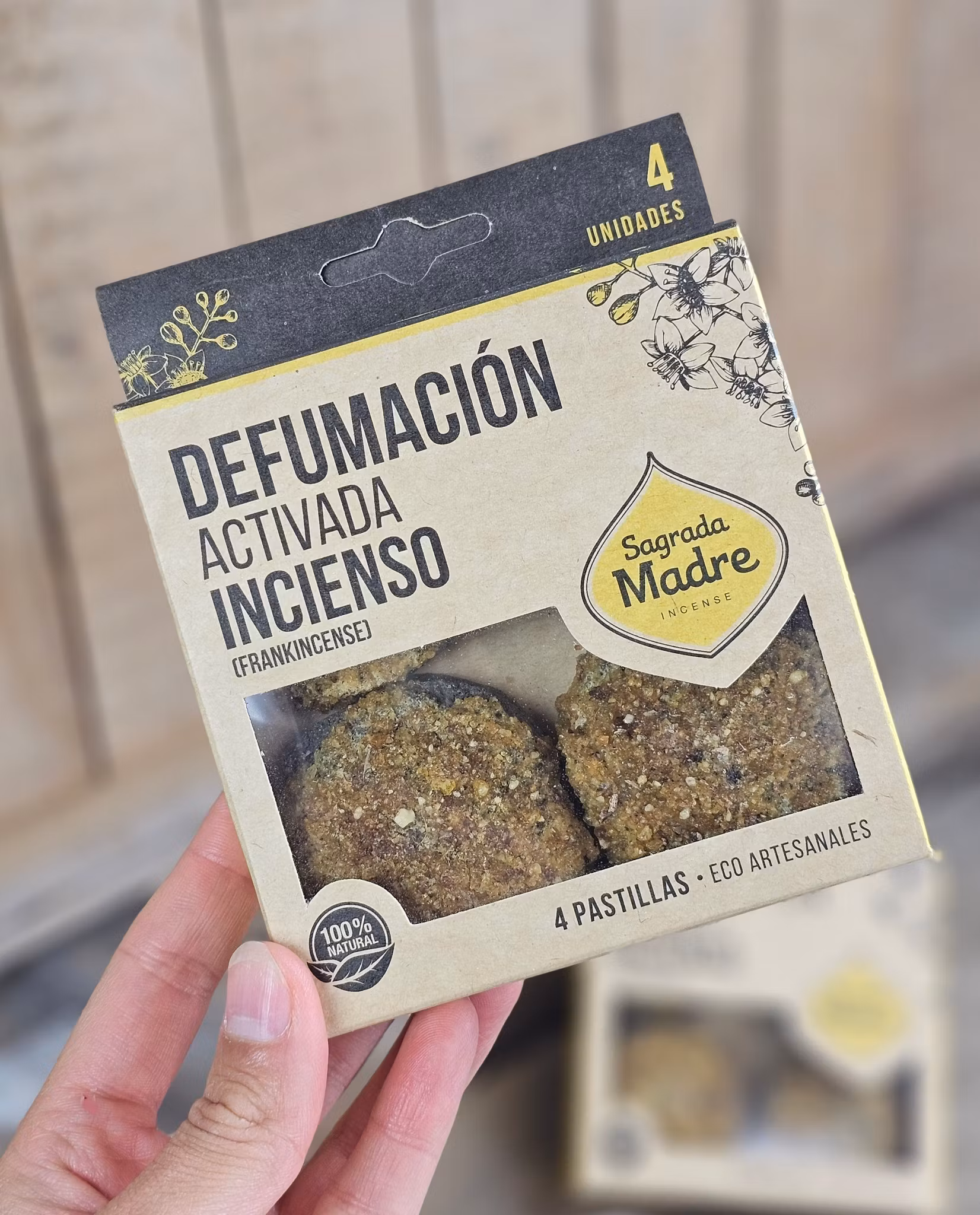Märke: Sagrada Madre. Sagrada Madre betyder "Helig Moder" (Pancha Mama) och detta namn speglar hur de behandlar jordens resurser. Det är ett märke med väldoftande och högkvalitativa rökelser som tillverkas i Argentina. Förutom träkol använder Sagrada Madre en doftfri fruktbaserad biomassa som förbränningsmedel. Varje år slängs över 100 ton fruktbiomassa från industriell bearbetning såsom juicetillverkning. Istället för att låta dessa material gå till spillo, återanvänder Sagrada Madre dem effektivt i deras rökelser. En 100% unik naturprodukt, handgjord i Argentina av pulveriserade örter, hartser (kåda) och blommor, ihop med ett växtbaserat bindemedel. Alla varianter av Sagrada Madre rökelse är noggrant förpackade i attraktivt naturligt förpackningsmaterial för att skapa så liten påverkan på miljön som möjligt.