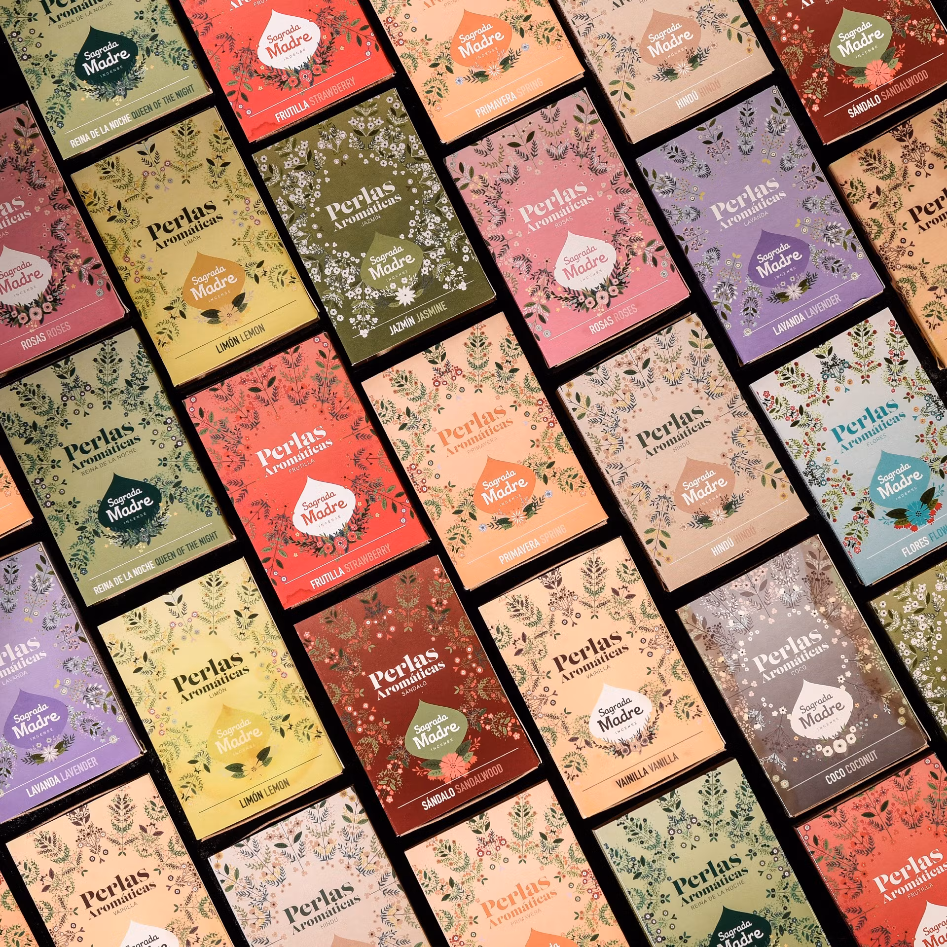 Märke: Sagrada Madre. Sagrada Madre betyder "Helig Moder" (Pancha Mama) och detta namn speglar hur de behandlar jordens resurser. Det är ett märke med väldoftande och högkvalitativa rökelser som tillverkas i Argentina. Förutom träkol använder Sagrada Madre en doftfri fruktbaserad biomassa som förbränningsmedel. Varje år slängs över 100 ton fruktbiomassa från industriell bearbetning såsom juicetillverkning. Istället för att låta dessa material gå till spillo, återanvänder Sagrada Madre dem effektivt i deras rökelser. En 100% unik naturprodukt, handgjord i Argentina av pulveriserade örter, hartser (kåda) och blommor, ihop med ett växtbaserat bindemedel. Alla varianter av Sagrada Madre rökelse är noggrant förpackade i attraktivt naturligt förpackningsmaterial för att skapa så liten påverkan på miljön som möjligt.
