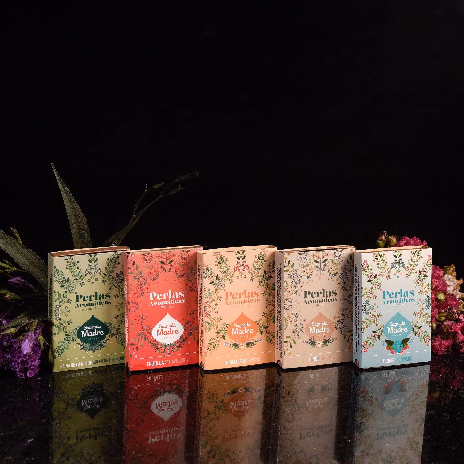 Märke: Sagrada Madre. Sagrada Madre betyder "Helig Moder" (Pancha Mama) och detta namn speglar hur de behandlar jordens resurser. Det är ett märke med väldoftande och högkvalitativa rökelser som tillverkas i Argentina. Förutom träkol använder Sagrada Madre en doftfri fruktbaserad biomassa som förbränningsmedel. Varje år slängs över 100 ton fruktbiomassa från industriell bearbetning såsom juicetillverkning. Istället för att låta dessa material gå till spillo, återanvänder Sagrada Madre dem effektivt i deras rökelser. En 100% unik naturprodukt, handgjord i Argentina av pulveriserade örter, hartser (kåda) och blommor, ihop med ett växtbaserat bindemedel. Alla varianter av Sagrada Madre rökelse är noggrant förpackade i attraktivt naturligt förpackningsmaterial för att skapa så liten påverkan på miljön som möjligt.