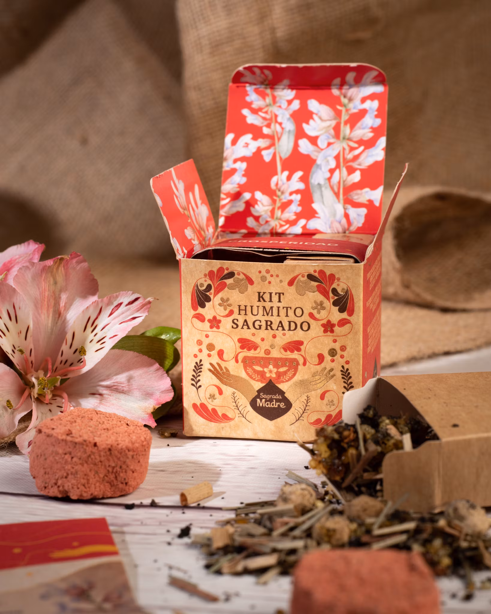 Märke: Sagrada Madre. Sagrada Madre betyder "Helig Moder" (Pancha Mama) och detta namn speglar hur de behandlar jordens resurser. Det är ett märke med väldoftande och högkvalitativa rökelser som tillverkas i Argentina. Förutom träkol använder Sagrada Madre en doftfri fruktbaserad biomassa som förbränningsmedel. Varje år slängs över 100 ton fruktbiomassa från industriell bearbetning såsom juicetillverkning. Istället för att låta dessa material gå till spillo, återanvänder Sagrada Madre dem effektivt i deras rökelser. En 100% unik naturprodukt, handgjord i Argentina av pulveriserade örter, hartser (kåda) och blommor, ihop med ett växtbaserat bindemedel. Alla varianter av Sagrada Madre rökelse är noggrant förpackade i attraktivt naturligt förpackningsmaterial för att skapa så liten påverkan på miljön som möjligt.