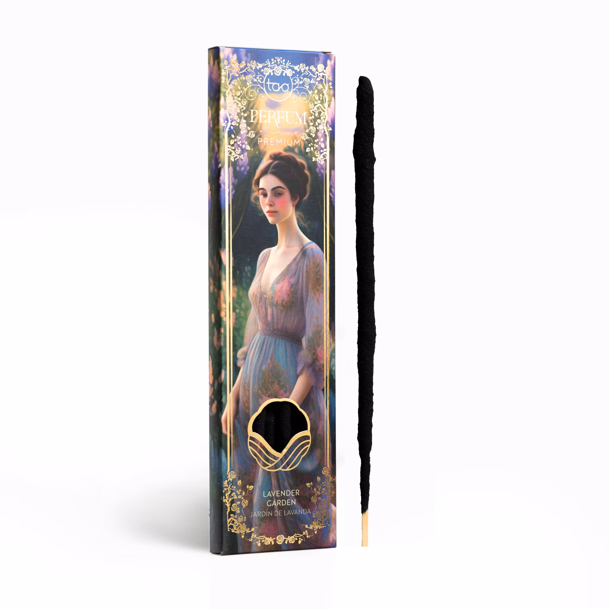 Sagrada Madre TAO Premium Lavender Garden sprider en frisk, blommig lavendeldoft som lugnar sinnet och omsluter rummet i stilla ro. Premium, långbrinnande pinnar i kompakt fruktbiomassa (kolfri) med ren och jämn glöd. Säljs per förpackning (8 rökelsepinnar, ca 23 cm; ca 60 min/pinne).