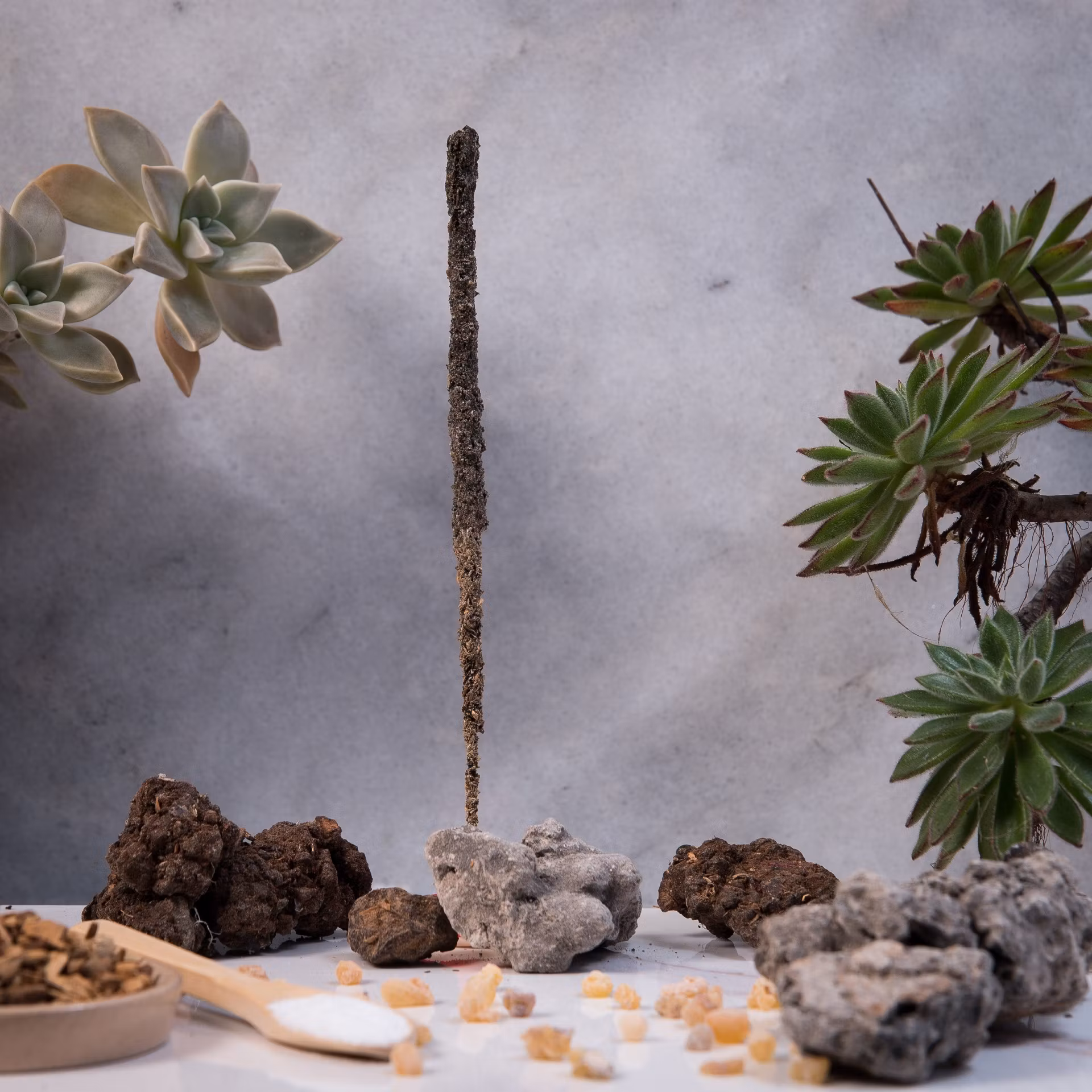 Doft: Triple Combination. Upptäck magin med healing och rening med blandningen av heliga element. Denna magiska rökelsesticka förändrar doft tre gånger under tiden den bränns. Dess arom kommer att stärka din andliga vibration och förbättra din inre anslutning, vilket ger mental klarhet. Sammansättning av frankincense, myrra, copal, yagra, vinruta, champablomma, sandelträ, rosmarin och palo santo. Fruktbiomassa, naturligt bindemedel och salt. 100% vegansk, ekologisk.