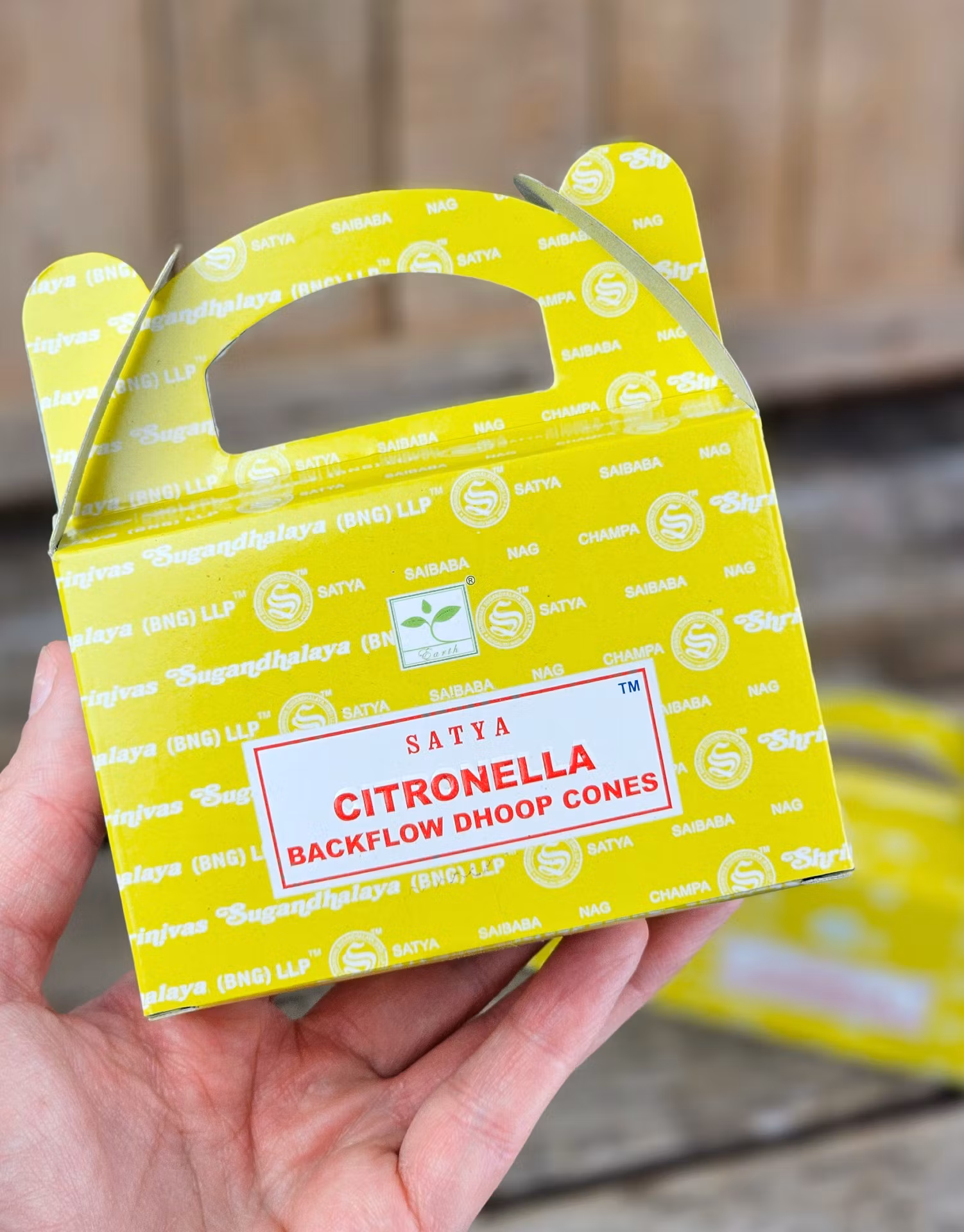 Doft: Citronella. Mycket fräsch citrusdoft. Citronella anropar livets krafter för läkning, avkoppling och lycka för den som använder sig av denna rökelse. Passar även perfekt till sommarkvällarna för att hålla myggen borta.