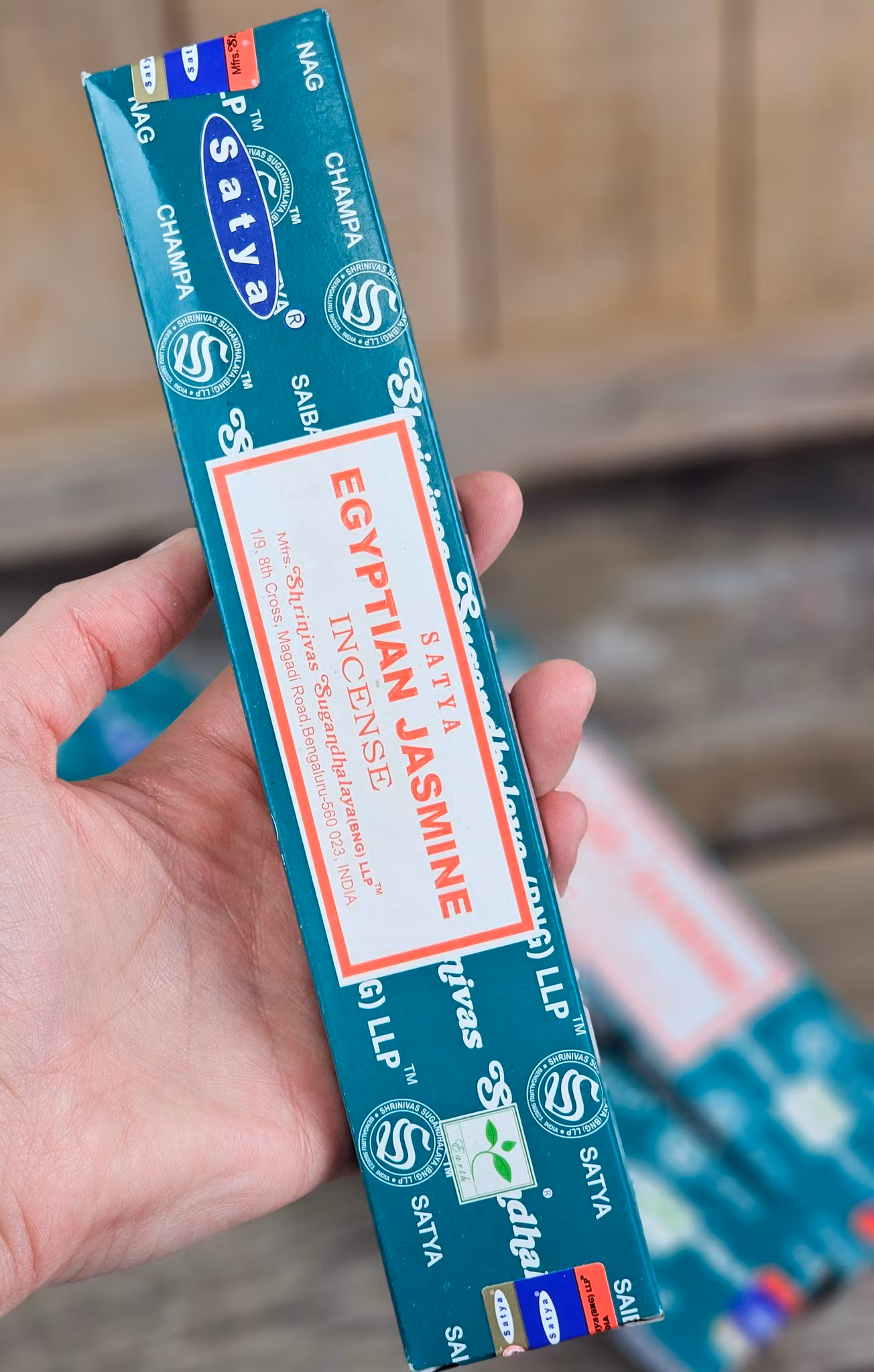 Märke: Satya (Shrinivas Sugandhalaya). Ett av världens mest kända och populära rökelseföretag. Ett djupt engagerat företag som arbetat med övervägande kvinnliga anställda baserat på tre generationer som arbetar under samma tak. Jobb på dess anläggning i Indien går ofta från mormödrar till mödrar till döttrar. De anställda är skickliga hantverkare, de är utbildade i det exakta måttet som krävs för att göra en perfekt och enhetlig pinne. Användningen av bambu i deras arbete säkerställer ett minimalt ekologiskt fotavtryck och är ett stort stöd för stamhantverkare. De anställda får sociala omkostnader och en god lön utöver arbetsutrustning, inklusive masker och handskar, ett företag som värnar om sina anställda.