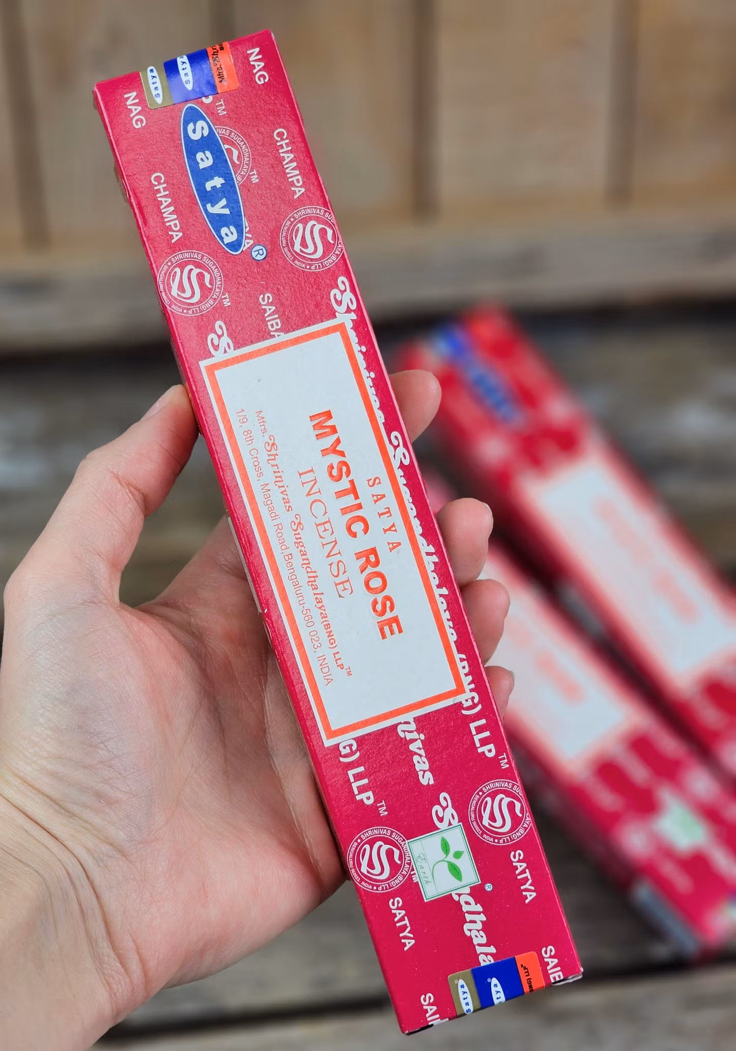 Märke: Satya (Shrinivas Sugandhalaya). Ett av världens mest kända och populära rökelseföretag. Ett djupt engagerat företag som arbetat med övervägande kvinnliga anställda baserat på tre generationer som arbetar under samma tak. Jobb på dess anläggning i Indien går ofta från mormödrar till mödrar till döttrar. De anställda är skickliga hantverkare, de är utbildade i det exakta måttet som krävs för att göra en perfekt och enhetlig pinne. Användningen av bambu i deras arbete säkerställer ett minimalt ekologiskt fotavtryck och är ett stort stöd för stamhantverkare. De anställda får sociala omkostnader och en god lön utöver arbetsutrustning, inklusive masker och handskar, ett företag som värnar om sina anställda.