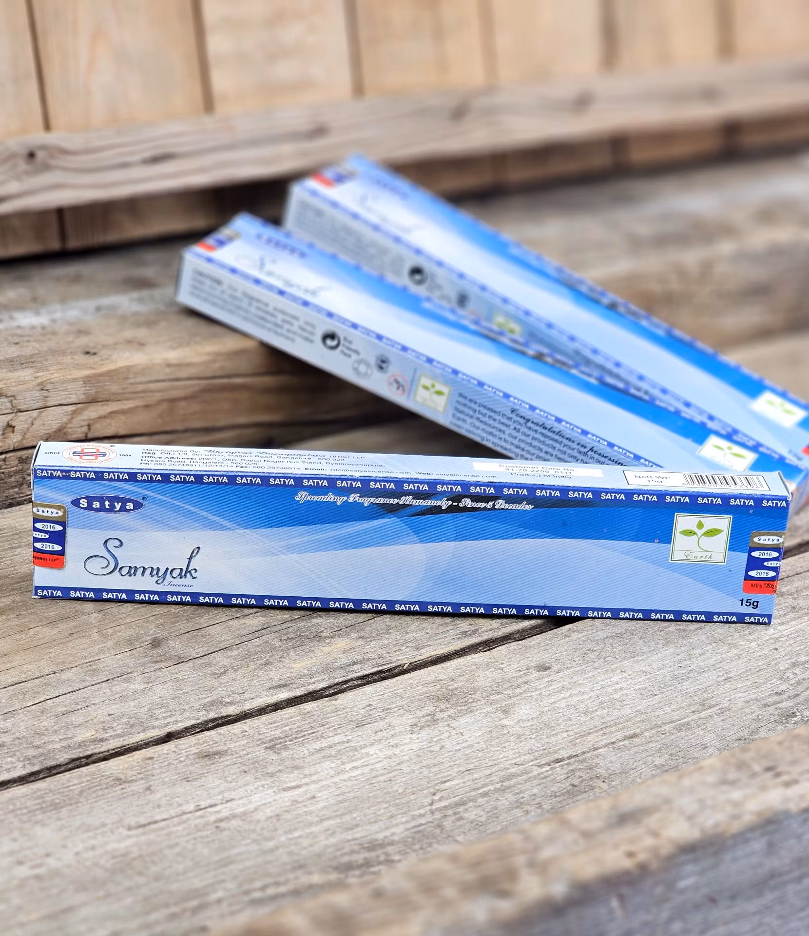 Märke: Satya (Shrinivas Sugandhalaya). Ett av världens mest kända och populära rökelseföretag. Ett djupt engagerat företag som arbetat med övervägande kvinnliga anställda baserat på tre generationer som arbetar under samma tak. Jobb på dess anläggning i Indien går ofta från mormödrar till mödrar till döttrar. De anställda är skickliga hantverkare, de är utbildade i det exakta måttet som krävs för att göra en perfekt och enhetlig pinne. Användningen av bambu i deras arbete säkerställer ett minimalt ekologiskt fotavtryck och är ett stort stöd för stamhantverkare. De anställda får sociala omkostnader och en god lön utöver arbetsutrustning, inklusive masker och handskar, ett företag som värnar om sina anställda.