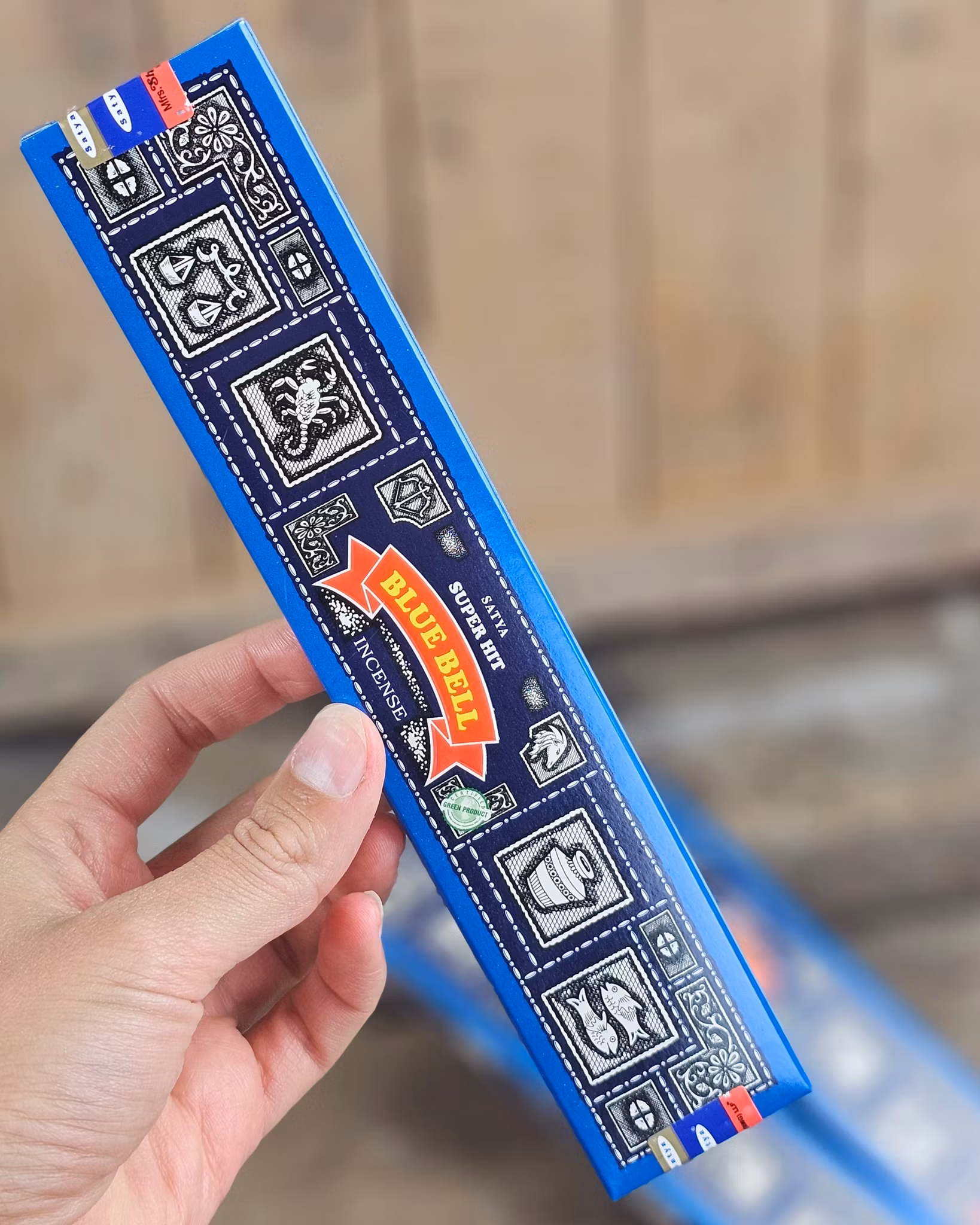 Doft: Super Hit Blue Bell. Super hit är likt sitt namn en storsäljare världen över. Perfekt för dagligt bruk. Blue Bell rökelse ger dig en känsla av empati, välstånd, inre harmoni, avkoppling och inkapsling av dig själv för att höja dina vibrationer. Subtilt renar atmosfären i rummet. Används främst för meditation och andlig utveckling.