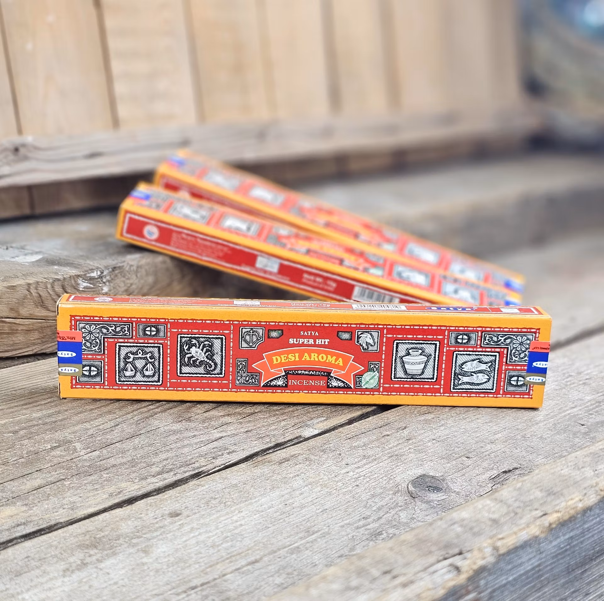 Doft: Super Hit Desi Aroma. Super hit är likt sitt namn en storsäljare världen över. Upplev Satya Super Hit Desi Aroma Rökelse! En festlig, exotisk kryddig blandning av sällsynta ingredienser för meditation och andlig upplyftning. Renar och lugnar.