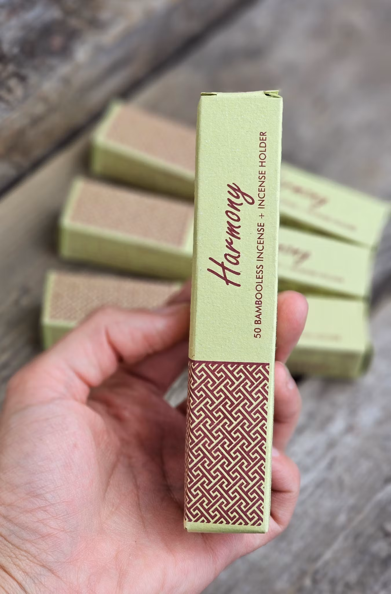Doft: Harmony. (Harmoni) Rik doft av rosor och fina blommiga toner. Dessa rökelsepinnar har ingen bambupinne i sin grund vilket betyder att det blir en mer ren, delikat doft. Det blir dessutom inte så mycket rök vid bränning. Observera att då dessa rökelsepinnar ej har någon bambupinne som grund så är dessa rökelsepinnar känsligare och kan lättare brytas av vid oaktsam hantering.