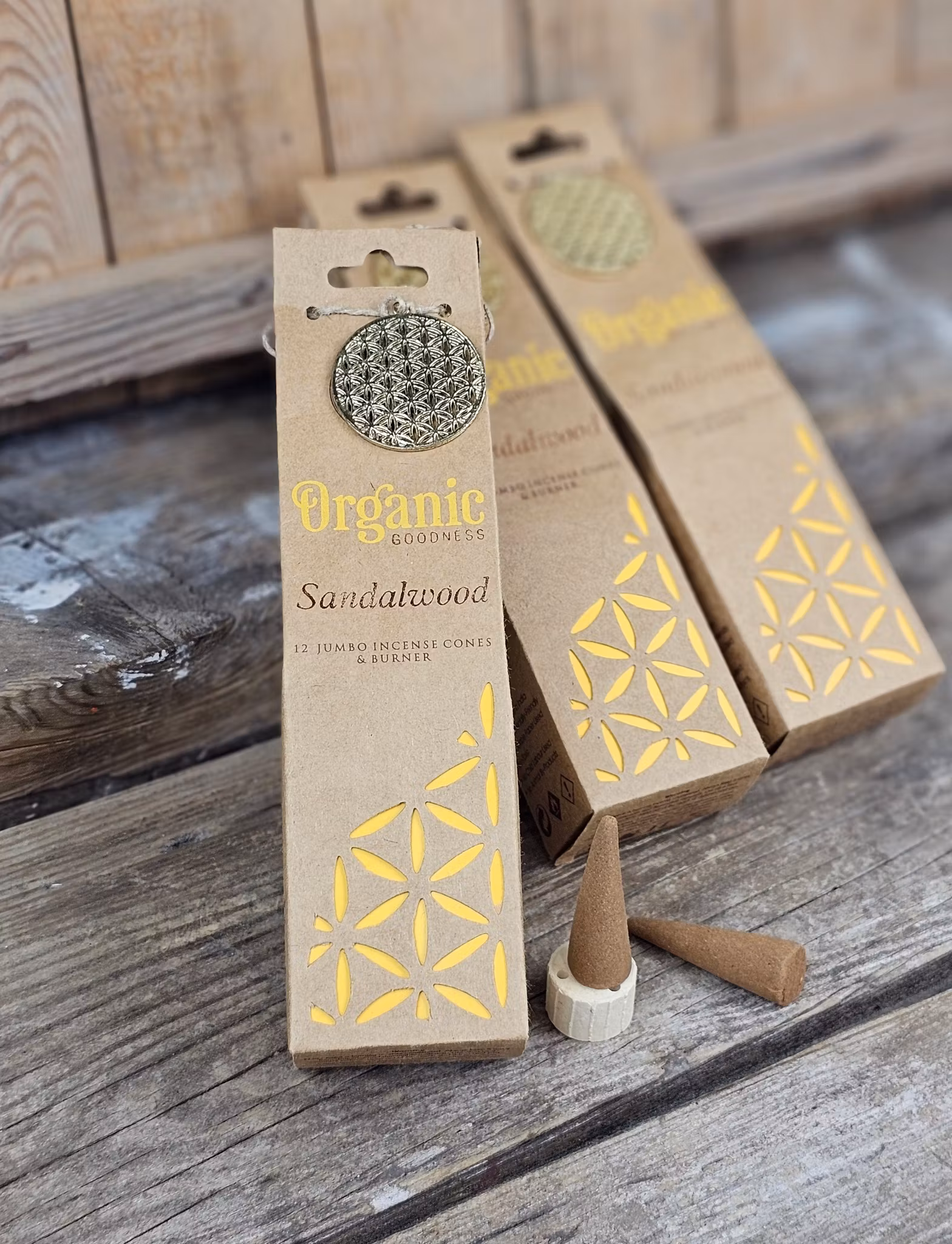 Säljes per 1 styck förpackning om totalvikt ca 70 gram, vilket motsvarar ca 12 stycken rökelsekoner. Det ingår även en liten keramik-hållare.