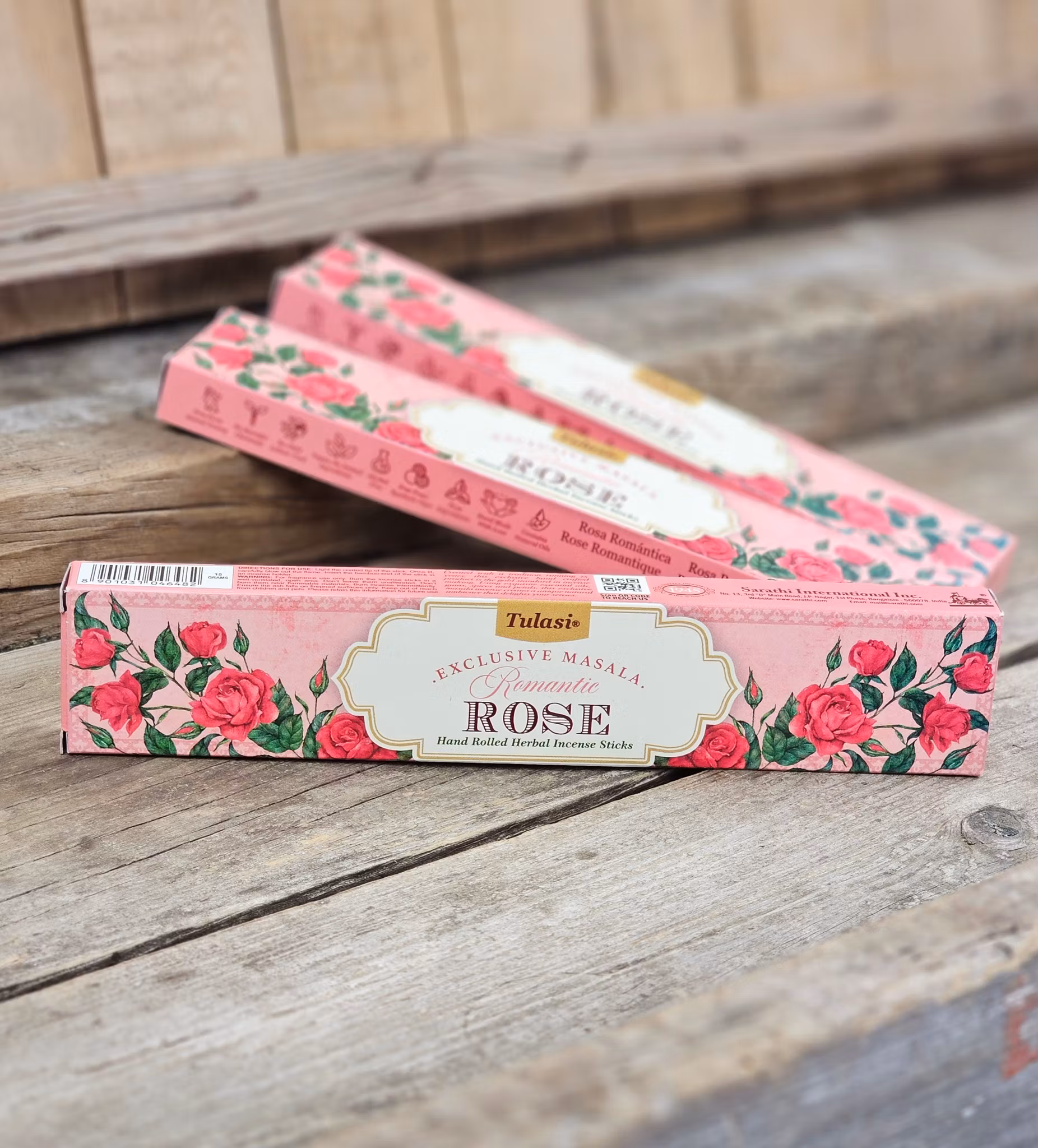 Doft: Exclusive Rose. Rosdoft ur den underbara serien "Exclusive" från Tulasi. Dessaa exklusiva dofter ur deras serie sammanför distinkta örtblandningar, var och en av dessa sorter är ett bevis på det konstnärskap och autenticitet som definierar Tulasi rökelser. Ett riktigt måste att pröva på!