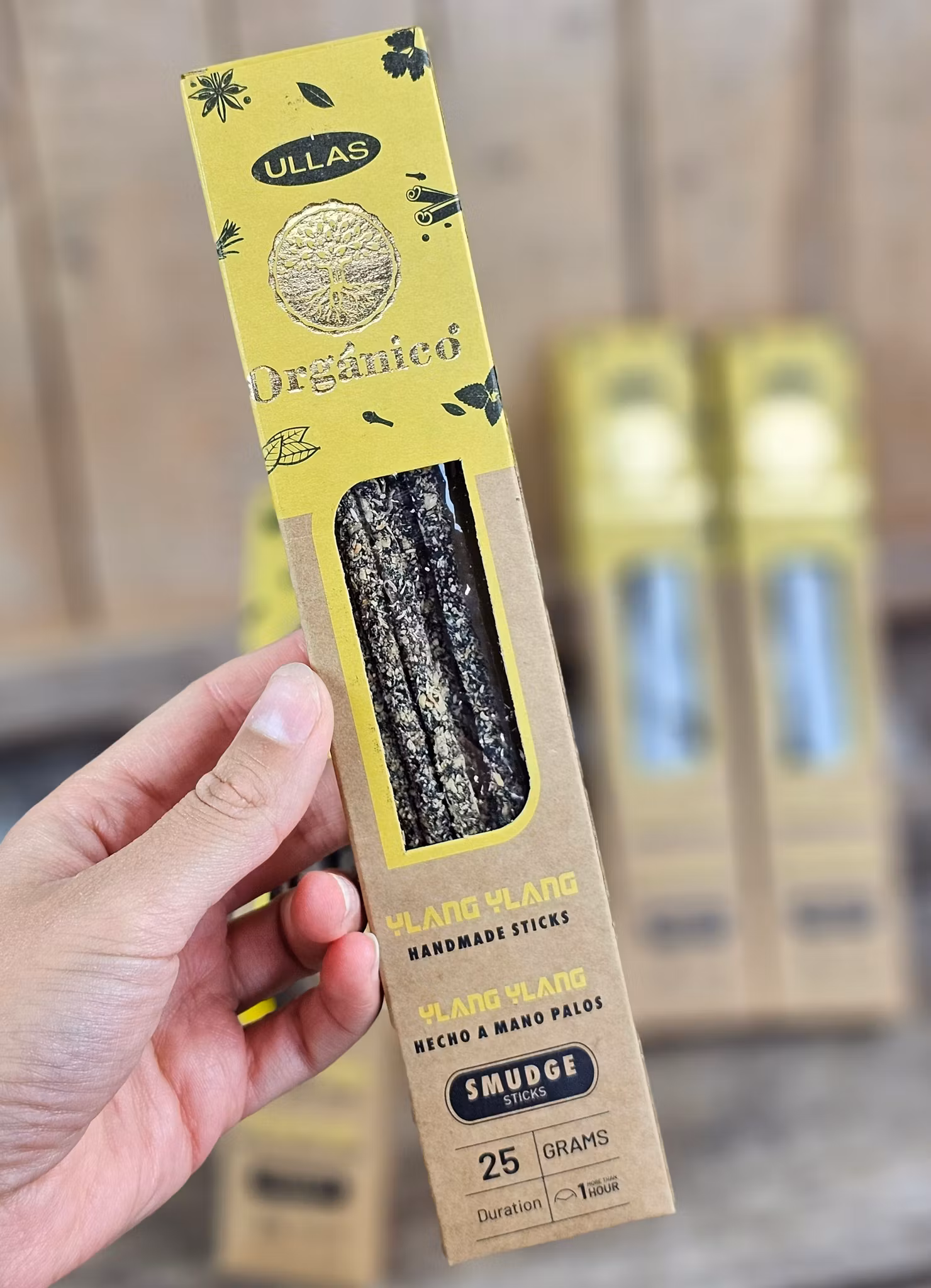 Doft: Ylang Ylang. Sensuell och avkopplande arom som avger en blommig och exotisk doft från ren Ylang Ylang essens, känd för sina avslappnande egenskaper. Upptäck sensualitet och balans med Ullas Orgánico Ylang Ylang rökelsepinnar. Designad för att skapa en harmonisk och avkopplande atmosfär, är denna rökelse idealisk för den som söker en unik och naturlig sensorisk upplevelse. För sensualitet och balans. Ullas Agarbathies är tillverkade för att vara miljövänliga och giftfria, rökelsepinnarna säkerställer förstklassig brinnkvalitet. Ullas Organico-serie är världens första rökelse som tilldelats certifieringen ECOCERT Greenlife för sina rena och vegetabiliska rökelser.